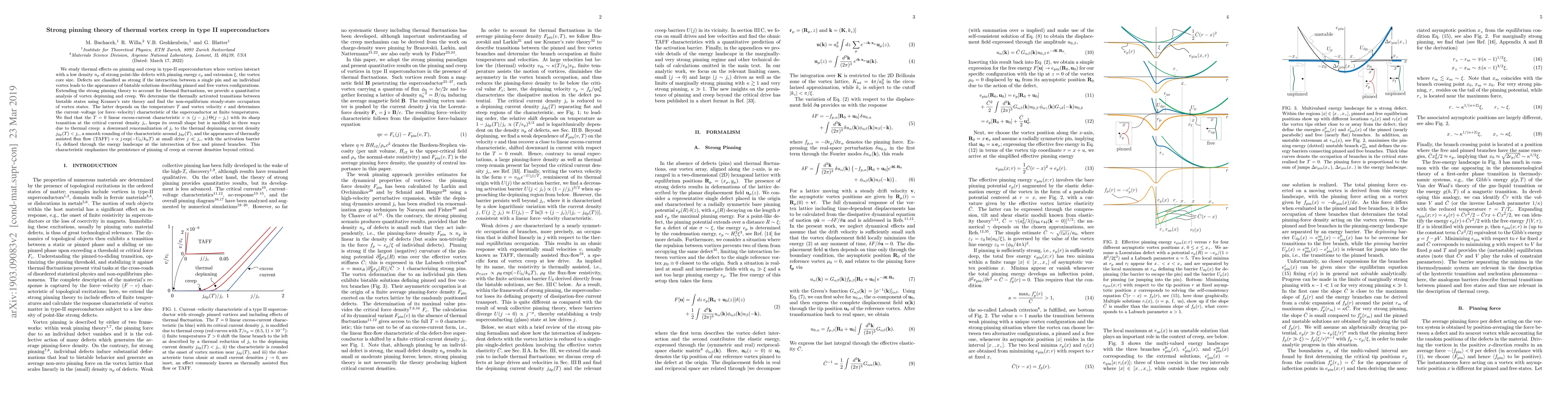 This paper investigates thermal effects on vortex pinning and creep in type-II superconductors, focusing on strong pinning theory for low-density point-like defects. It quantitatively analyzes vortex depinning and creep due to thermal fluctuations, revealing modifications to the current-voltage characteristic at finite temperatures, including a renormalization of the critical current density and the emergence of thermally assisted flux flow.