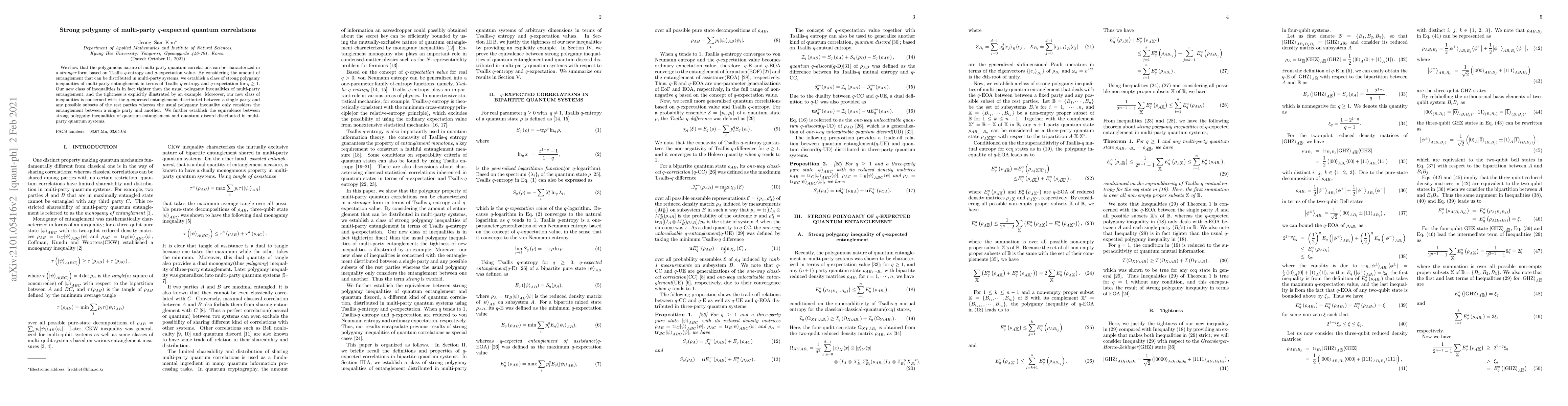This paper introduces stronger polygamy inequalities for multi-party quantum correlations based on Tsallis $q$-entropy and $q$-expectation, providing tighter bounds than traditional inequalities. It also establishes equivalence between strong polygamy inequalities for quantum entanglement and discord in multi-party systems.