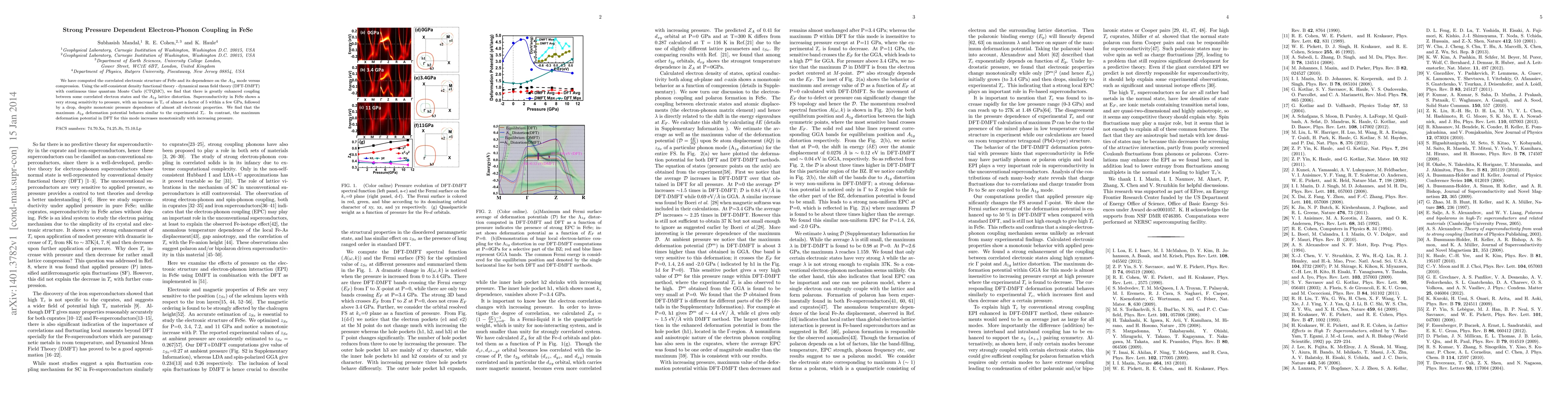 This study reveals strong pressure-dependent electron-phonon coupling in FeSe, showing significant enhancement in the interaction between correlated electron states and the A1g lattice distortion. Superconductivity's Tc increases sharply with pressure initially but then declines, despite other electronic properties' monotonic pressure dependence.