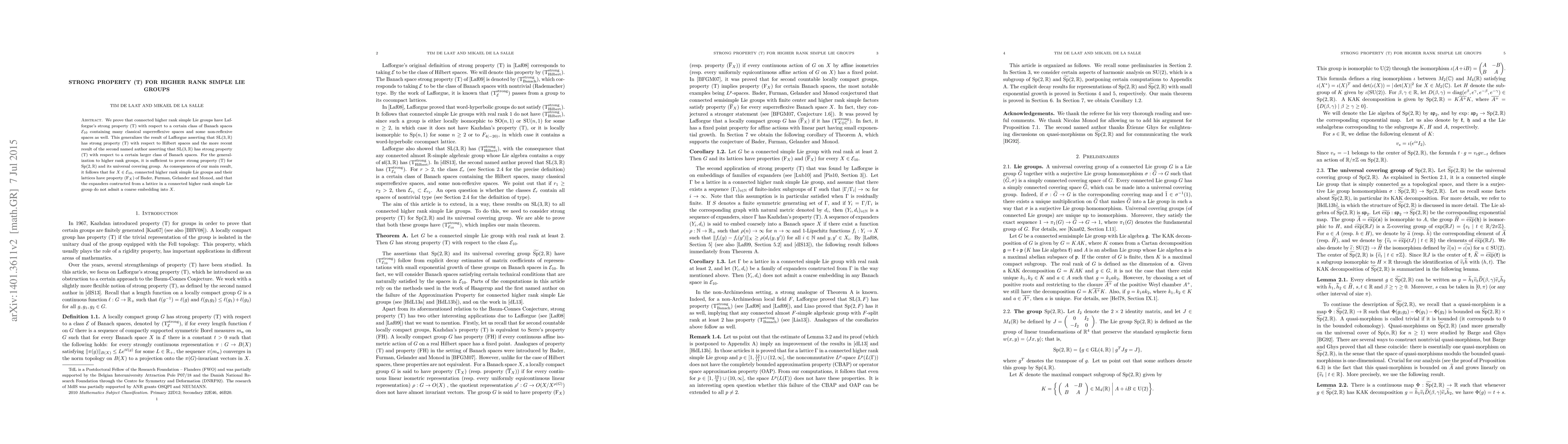 This generalization of strong property (T) to higher rank simple Lie groups has implications for understanding the geometric and analytical properties of these groups, which are fundamental in various areas of mathematics and theoretical physics.