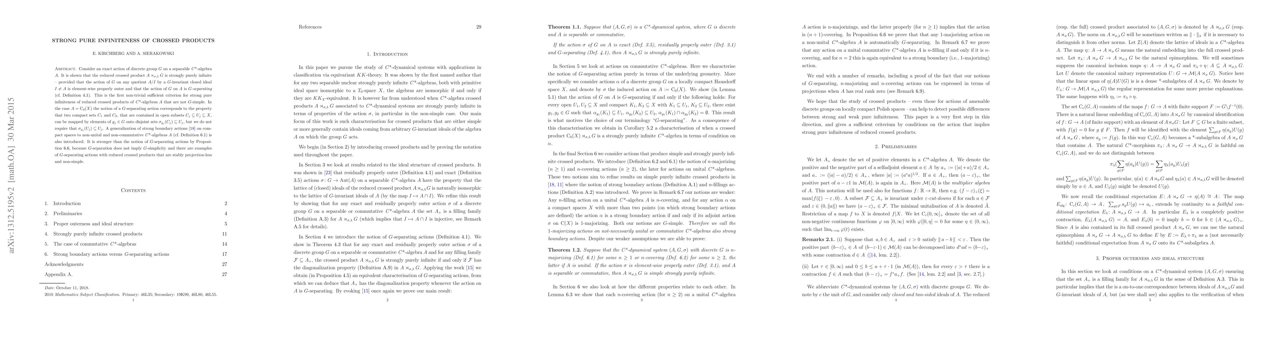 Consider an exact action of discrete group $G$ on a separable $C^*$-algebra $A$. It is shown that the reduced crossed product $A\rtimes_{\sigma, \lambda} G$ is strongly purely infinite - provided that the action of $G$ on any quotient $A/I$ by a $G$-invariant closed ideal $I\neq A$ is element-wise properly outer and that the action of $G$ on $A$ is $G$-separating (cf. Definition 4.1). This is the first non-trivial sufficient criterion for strong pure infiniteness of reduced crossed products of $C^*$-algebras $A$ that are not $G$-simple. In the case $A=\mathrm{C}_0(X)$ the notion of a $G$-separating action corresponds to the property that two compact sets $C_1$ and $C_2$, that are contained in open subsets $C_j\subseteq U_j \subseteq X$, can be mapped by elements of $g_j\in G$ onto disjoint sets $\sigma_{g_j}(C_j)\subseteq U_j$, but we do not require that $\sigma_{g_j}(U_j)\subseteq U_j$. A generalization of strong boundary actions on compact spaces to non-unital and non-commutative $C^*$-algebras $A$ (cf. Definition 6.1) is also introduced. It is stronger than the notion of $G$-separating actions by Proposition 6.6, because $G$-separation does not imply $G$-simplicity and there are examples of $G$-separating actions with reduced crossed products that are stably projection-less and non-simple.