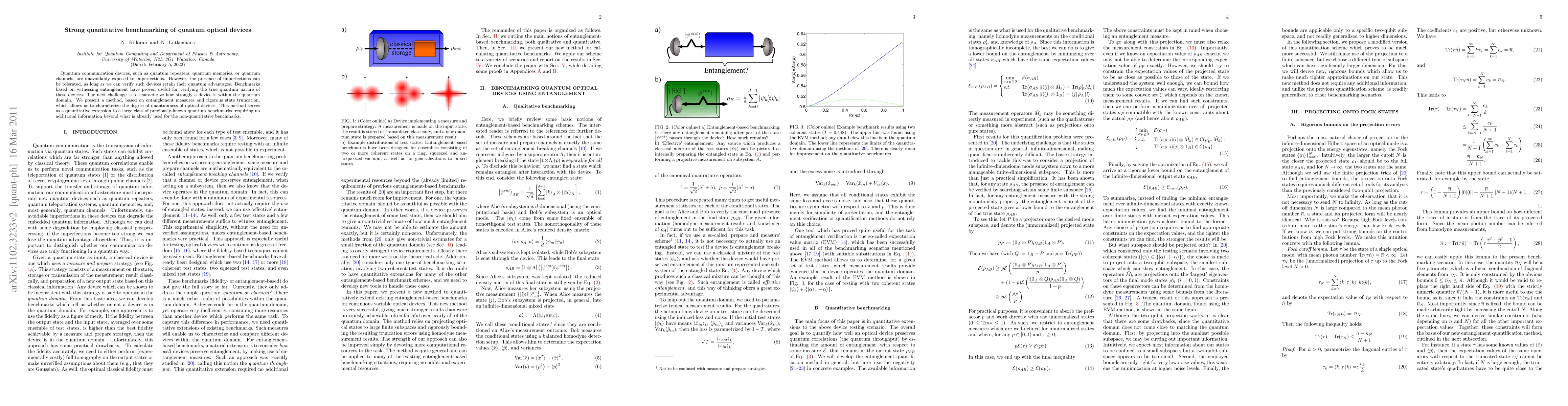 Quantum communication devices, such as quantum repeaters, quantum memories, or quantum channels, are unavoidably exposed to imperfections. However, the presence of imperfections can be tolerated, as long as we can verify such devices retain their quantum advantages. Benchmarks based on witnessing entanglement have proven useful for verifying the true quantum nature of these devices. The next challenge is to characterize how strongly a device is within the quantum domain. We present a method, based on entanglement measures and rigorous state truncation, which allows us to characterize the degree of quantumness of optical devices. This method serves as a quantitative extension to a large class of previously-known quantum benchmarks, requiring no additional information beyond what is already used for the non-quantitative benchmarks.