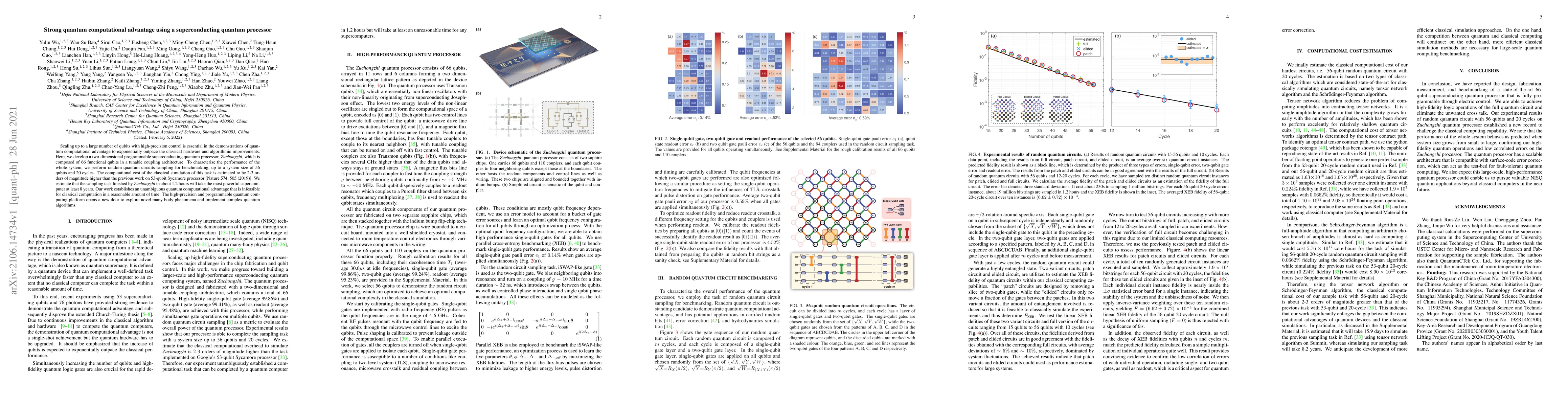 This paper demonstrates quantum computational advantage using a superconducting quantum processor named \textit{Zuchongzhi}, composed of 66 qubits. The processor completes a complex sampling task in 1.2 hours, which would take the most powerful supercomputer 8 years, establishing a clear quantum advantage over classical computation.