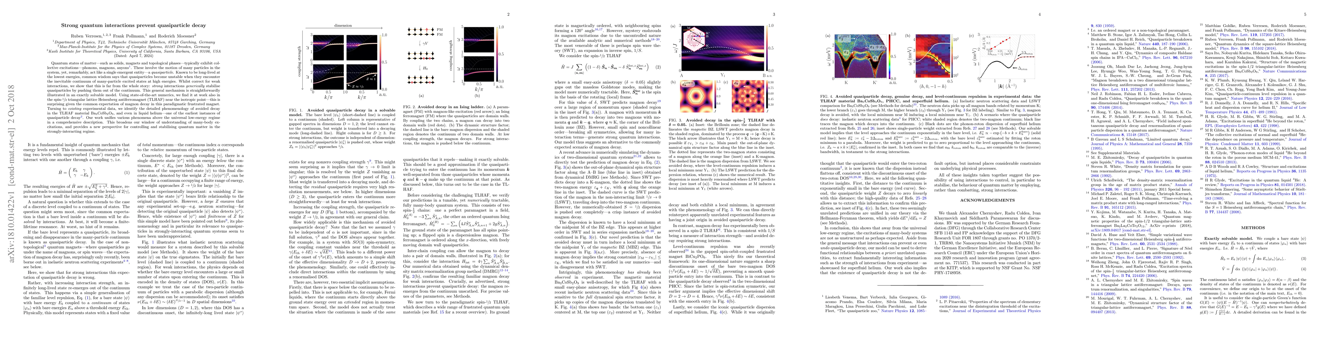 Quantum states of matter---such as solids, magnets and topological phases---typically exhibit collective excitations---phonons, magnons, anyons. These involve the motion of many particles in the system, yet, remarkably, act like a single emergent entity---a quasiparticle. Known to be long-lived at the lowest energies, common wisdom says that quasiparticles become unstable when they encounter the inevitable continuum of many-particle excited states at high energies. Whilst correct for weak interactions, we show that this is far from the whole story: strong interactions generically stabilise quasiparticles by pushing them out of the continuum. This general mechanism is straightforwardly illustrated in an exactly solvable model. Using state-of-the-art numerics, we find it at work also in the spin-$\frac{1}{2}$ triangular lattice Heisenberg antiferromagnet (TLHAF) near the isotropic point---this is surprising given the common expectation of magnon decay in this paradigmatic frustrated magnet. Turning to existing experimental data, we identify the detailed phenomenology of avoided decay in the TLHAF material Ba$_3$CoSb$_2$O$_9$, and even in liquid helium---one of the earliest instances of quasiparticle decay. Our work unifies various phenomena above the universal low-energy regime in a comprehensive description. This broadens our window of understanding of many-body excitations, and provides a new perspective for controlling and stabilising quantum matter in the strongly-interacting regime.