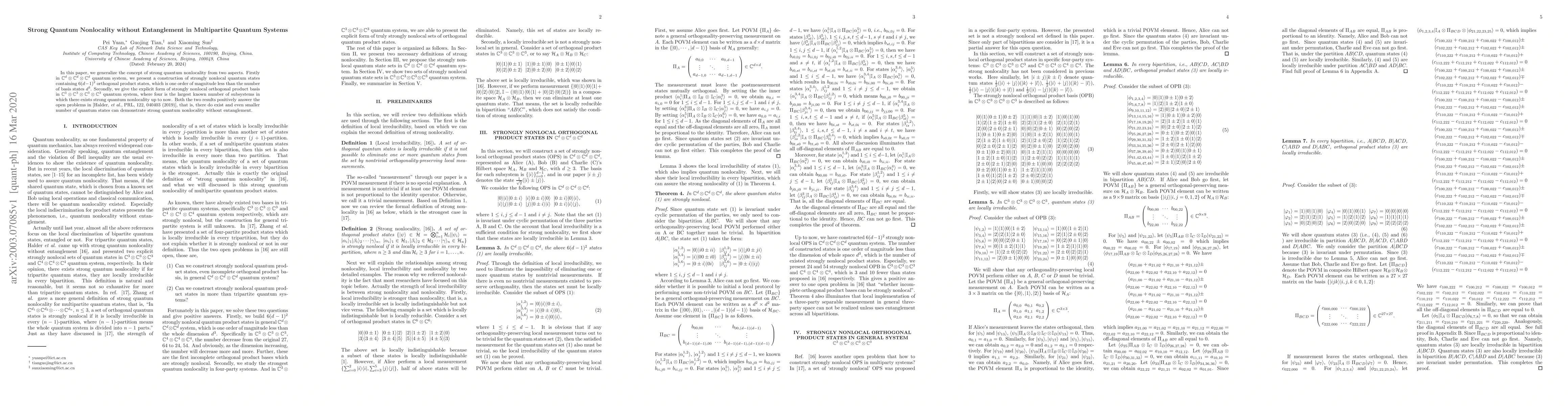 This paper constructs strongly nonlocal quantum states in multipartite systems without entanglement, demonstrating strong quantum nonlocality in $\mathbb{C}^d\otimes\mathbb{C}^d\otimes\mathbb{C}^d$ with fewer orthogonal product states than previously required, and provides an explicit form in $\mathbb{C}^3\otimes \mathbb{C}^3\otimes \mathbb{C}^3\otimes \mathbb{C}^3$ systems.
