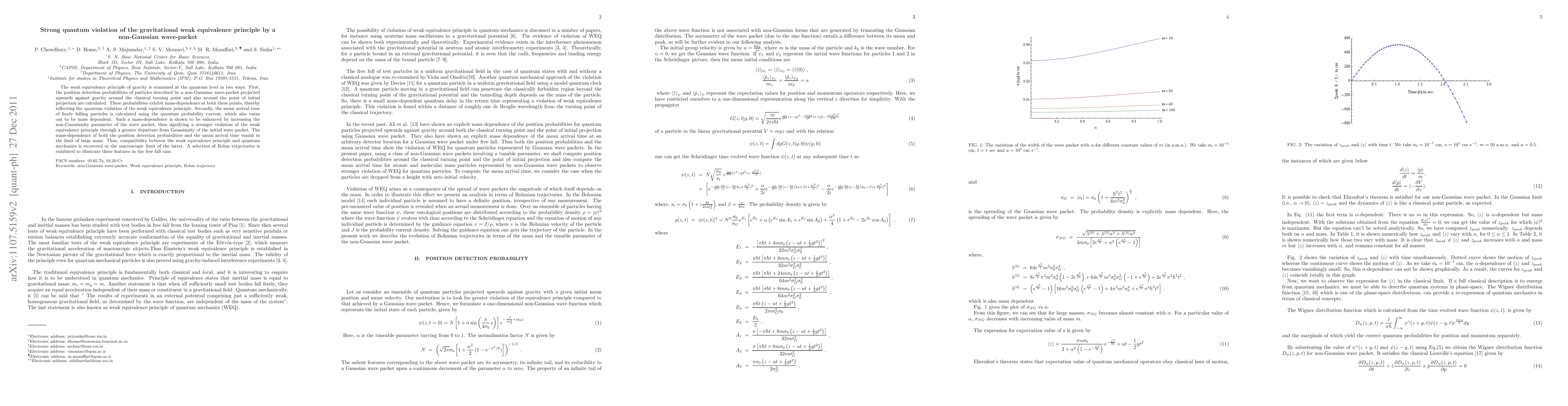 This paper investigates quantum violations of the gravitational weak equivalence principle using non-Gaussian wave-packets, showing mass-dependent position detection probabilities and mean arrival times, with stronger violations as the wave packet's non-Gaussianity increases. Macroscopic particles recover compatibility with the weak equivalence principle.