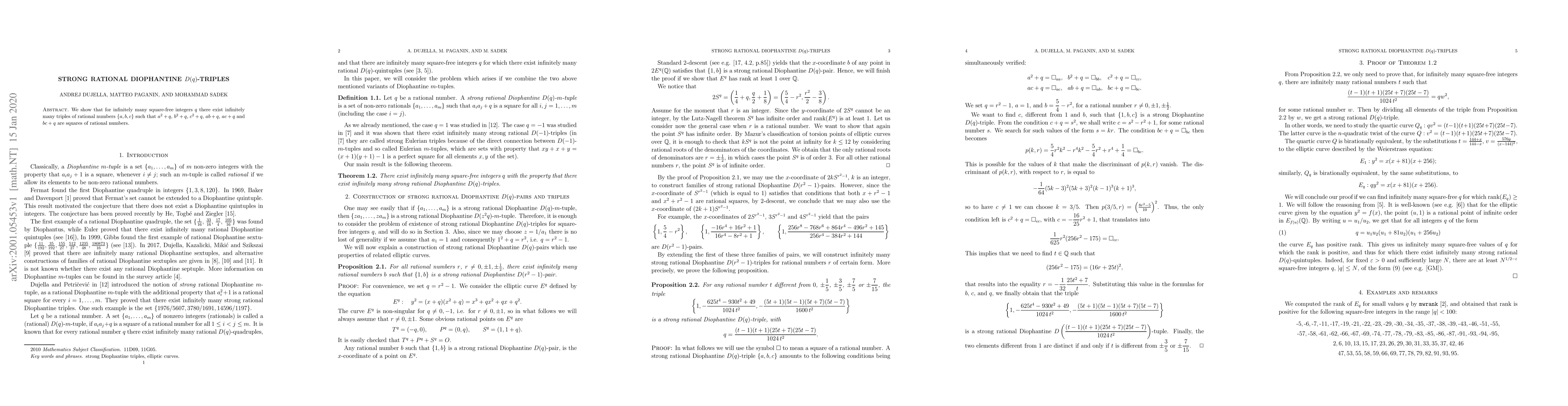 This paper shows that for infinitely many square-free integers q, there exist infinitely many triples of rational numbers that satisfy multiple equations involving squares and products of the numbers.