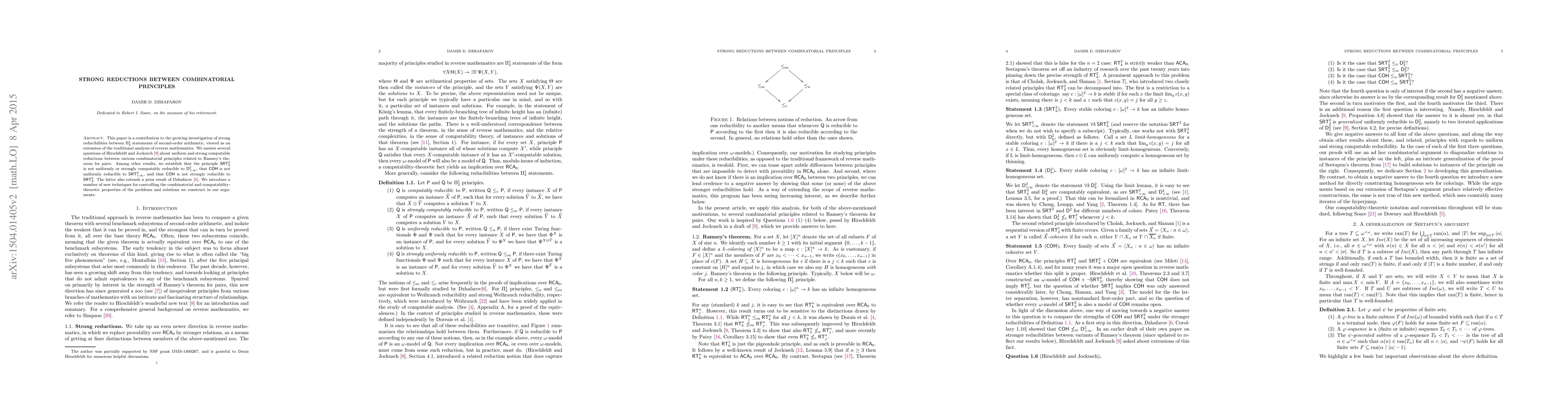 This paper investigates strong reducibilities between $\Pi^1_2$ statements in second-order arithmetic, establishing that $\mathsf{SRT}^2_2$ is not reducible to $\mathsf{D}^2_{<\infty}$ and $\mathsf{COH}$ is not reducible to $\mathsf{D}^2_{<\infty}$ or $\mathsf{D}^2_2$. It introduces new techniques for analyzing combinatorial and computability-theoretic properties.