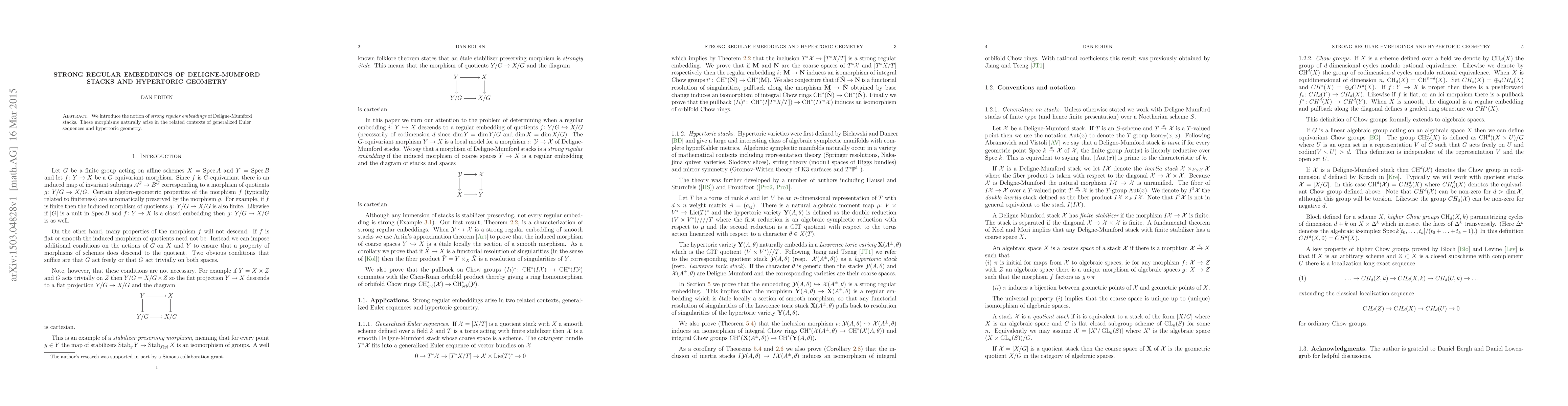 Summary: This paper introduces strong regular embeddings of Deligne-Mumford stacks, highlighting their relevance in generalized Euler sequences and hypertoric geometry, thus bridging advanced algebraic geometry with practical applications.