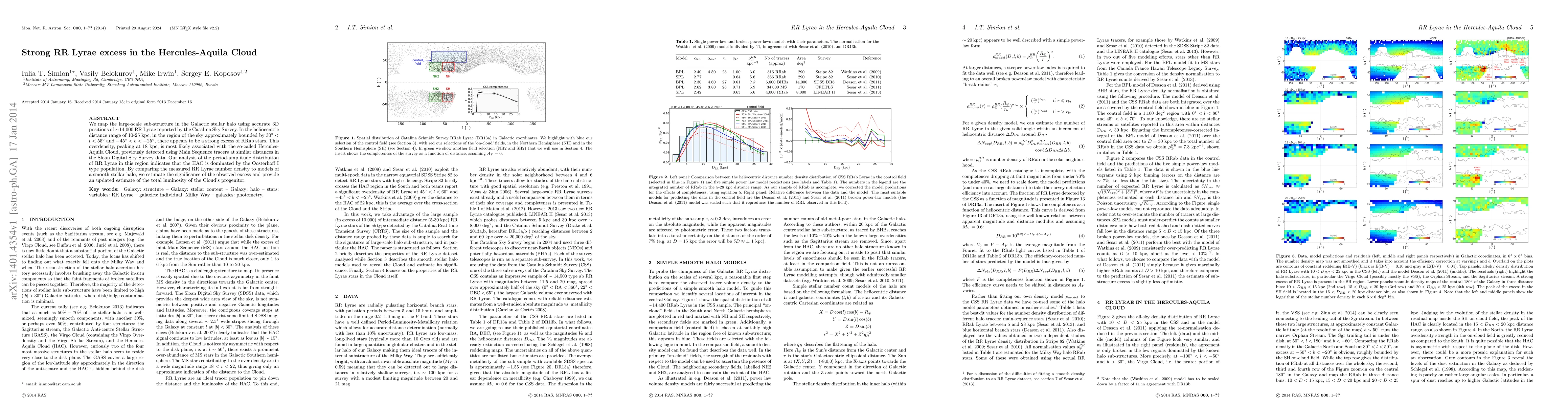 We map the large-scale sub-structure in the Galactic stellar halo using accurate 3D positions of ~14,000 RR Lyrae reported by the Catalina Sky Survey. In the heliocentric distance range of 10-25 kpc, in the region of the sky approximately bounded by 30{\deg} < l < 55{\deg} and -45{\deg} < b < -25{\deg}, there appears to be a strong excess of RRab stars. This overdensity, peaking at 18 kpc, is most likely associated with the so-called Hercules-Aquila Cloud, previously detected using Main Sequence tracers at similar distances in the Sloan Digital Sky Survey data. Our analysis of the period-amplitude distribution of RR Lyrae in this region indicates that the HAC is dominated by the Oosterhoff I type population. By comparing the measured RR Lyrae number density to models of a smooth stellar halo, we estimate the significance of the observed excess and provide an updated estimate of the total luminosity of the Cloud's progenitor.