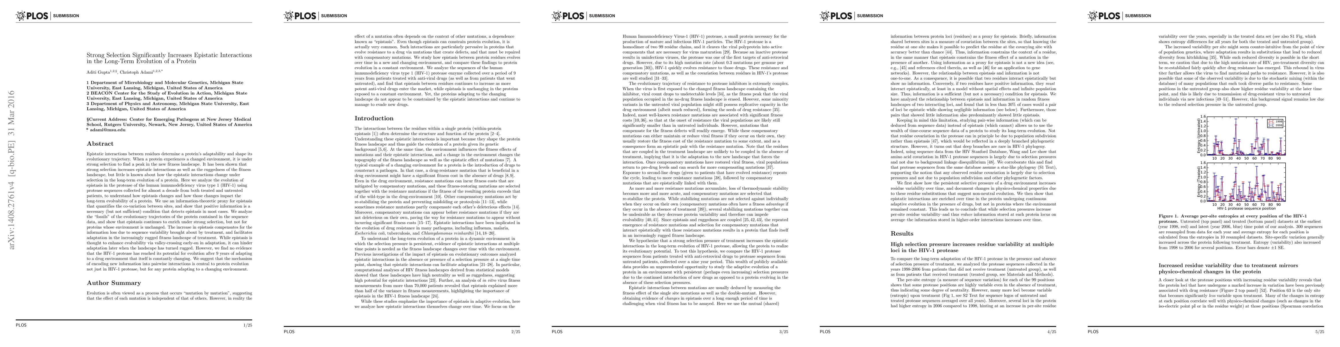 This study investigates how strong selection influences epistatic interactions in the long-term evolution of HIV-1 protease, revealing that epistasis increases under selection, compensating for information loss and aiding adaptation in a rugged fitness landscape, yet it does not hinder the protein's continued evolution after nine years of adaptation to changing drug environments.