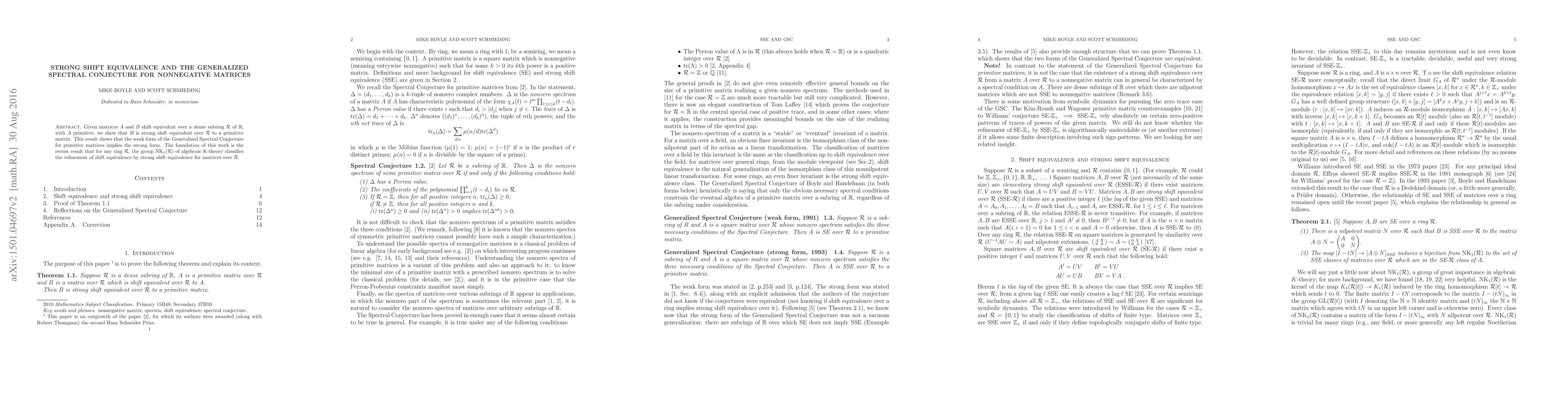 This paper demonstrates the equivalence of the weak and strong forms of the Generalized Spectral Conjecture, showing that spectral conditions on matrices over subrings are sufficient for shift equivalence. The study leverages algebraic K-theory to refine the understanding of shift equivalence, though the conjecture remains unresolved for real matrices.