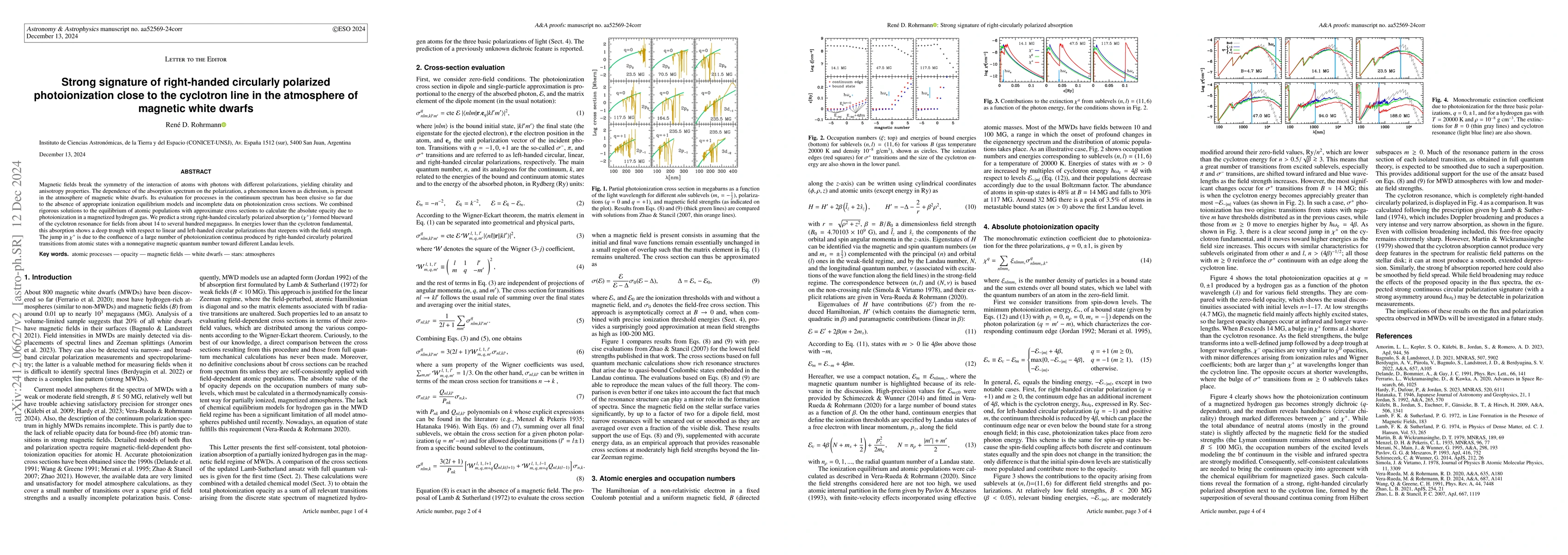 Magnetic fields break the symmetry of the interaction of atoms with photons with different polarizations, yielding chirality and anisotropy properties on the medium. The dependence of the absorption spectrum on the polarization, phenomenon known as dichroism, is present in the atmosphere of magnetic white dwarfs. Its evaluation for processes in the continuum spectrum has been elusive so far due to the absence of appropriate ionization equilibrium models and incomplete data on photoionization cross sections. We have combined rigurous solutions to the equilibrium of atomic populations with approximate cross sections to calculate the absolute opacity origined from photoionizations in a magnetized hydrogen gas. We report the prediction of a strong right-handed circularly polarized absorption ($\chi^+$) formed bluewards the cyclotron resonance for fields from about 14 to several hundred megagauss. In lower energies to cyclotron fundamental, this absorption shows a deep trough respect to linear and left-handed circular polarizations that steepens with the field strength. The jump formed in $\chi^+$ is due to the confluence of a large number of photoionization continua produced by right-circularly polarized transitions, which start from atomic states with non-negative magnetic quantum number toward different Landau levels.