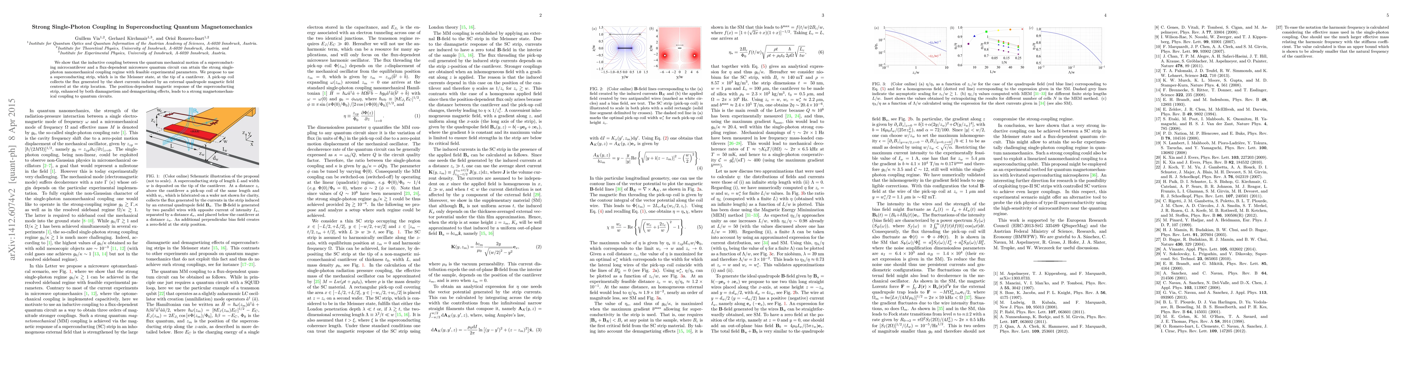 This paper demonstrates strong single-photon coupling between a superconducting microcantilever's quantum mechanical motion and a microwave quantum circuit via inductive coupling. The proposed setup uses a superconducting strip in the Meissner state at the cantilever's tip, with a pick-up coil to collect flux from induced sheet currents, achieving strong magnetomechanical coupling.