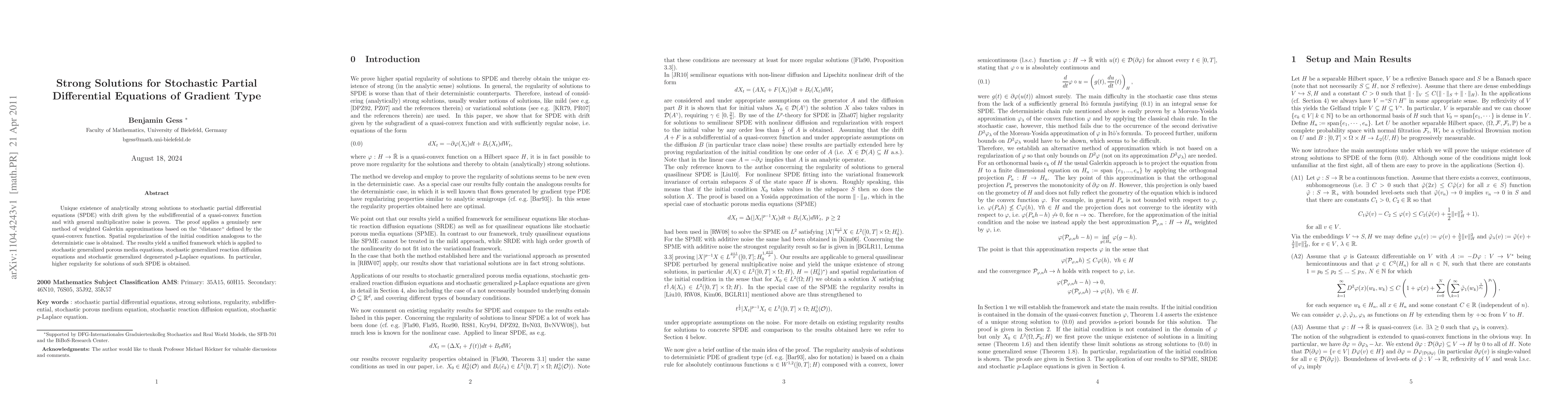 Unique existence of analytically strong solutions to stochastic partial differential equations (SPDE) with drift given by the subdifferential of a quasi-convex function and with general multiplicative noise is proven. The proof applies a genuinely new method of weighted Galerkin approximations based on the "distance" defined by the quasi-convex function. Spatial regularization of the initial condition analogous to the deterministic case is obtained. The results yield a unified framework which is applied to stochastic generalized porous media equations, stochastic generalized reaction diffusion equations and stochastic generalized degenerated p-Laplace equations. In particular, higher regularity for solutions of such SPDE is obtained.