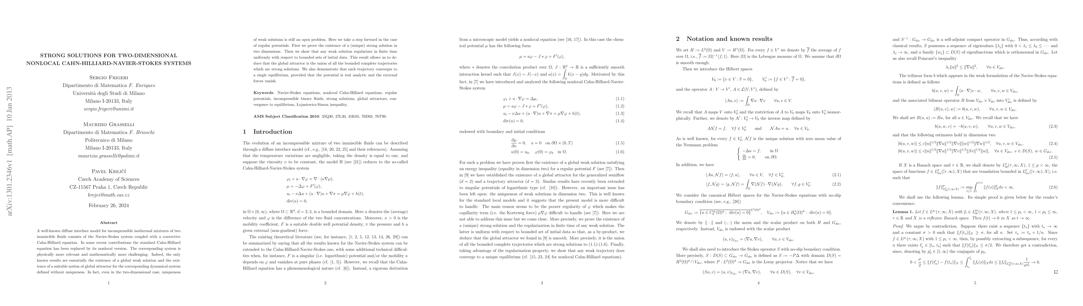The paper contributes by proving the existence of strong solutions with uniqueness in two dimensions for nonlocal Cahn-Hilliard-Navier-Stokes systems, providing a foundation for further study on global attractors and convergence to equilibria.