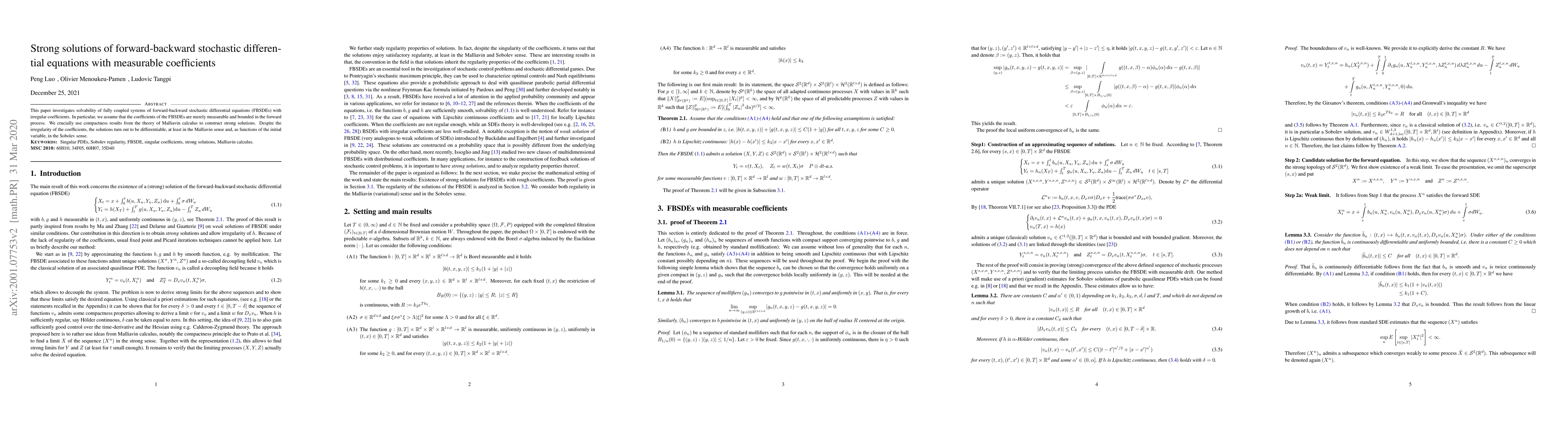 This paper explores the solvability of fully coupled forward-backward stochastic differential equations (FBSDEs) with measurable, bounded coefficients. It leverages compactness results from Malliavin calculus to construct strong, differentiable solutions, even with irregular coefficients.