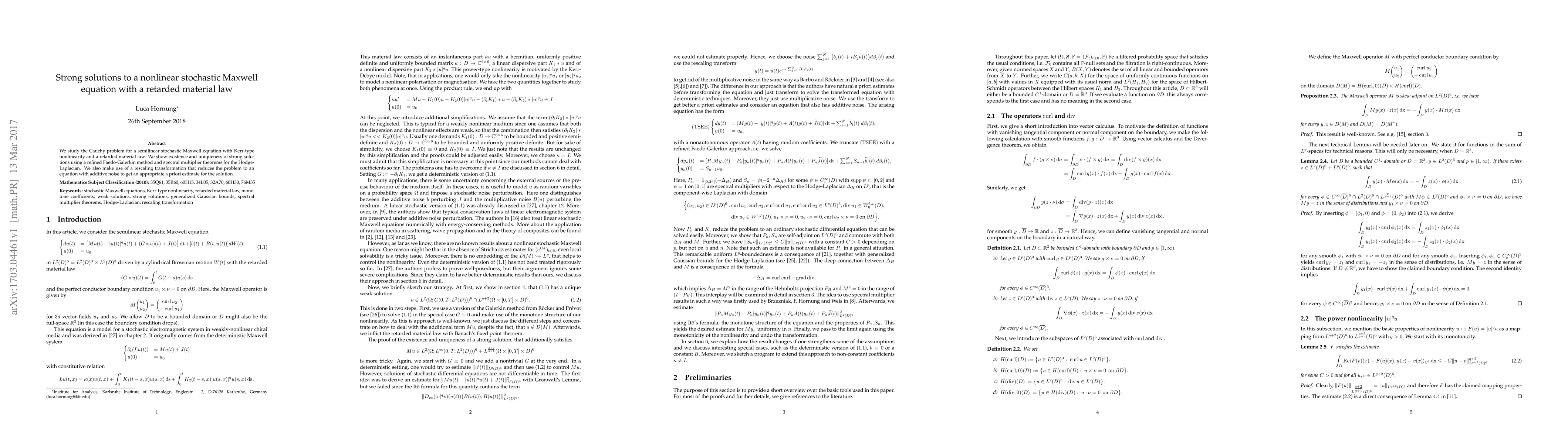 We study the Cauchy problem for a semilinear stochastic Maxwell equation with Kerr-type nonlinearity and a retarded material law. We show existence and uniqueness of strong solutions using a refined Faedo-Galerkin method and spectral multiplier theorems for the Hodge-Laplacian. We also make use of a rescaling transformation that reduces the problem to an equation with additive noise to get an appropriate a priori estimate for the solution.