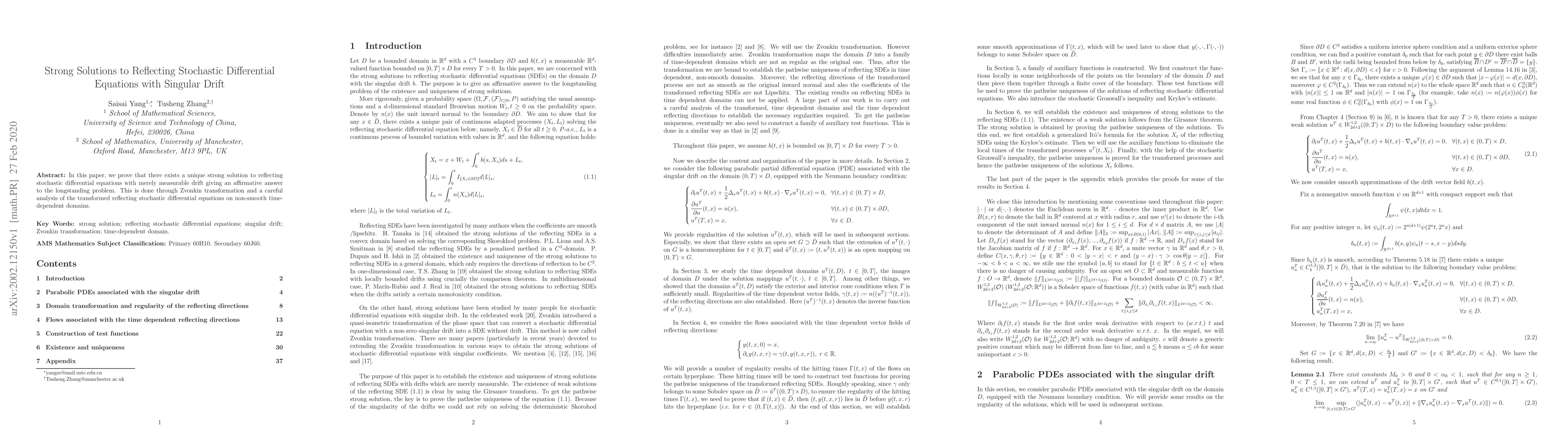 Summary: This paper establishes the existence of a unique strong solution for reflecting stochastic differential equations with singular drift, resolving a longstanding issue using Zvonkin transformation and an analysis on non-smooth domains.