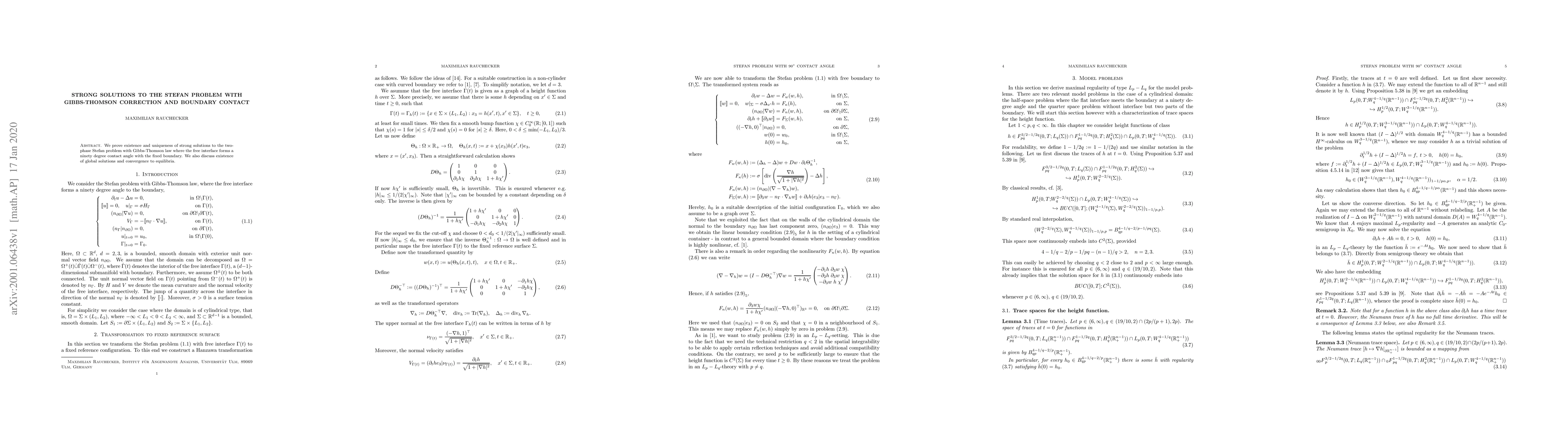 We prove existence and uniqueness of strong solutions to the two-phase Stefan problem with Gibbs-Thomson law where the free interface forms a ninety degree contact angle with the fixed boundary. We also discuss existence of global solutions and convergence to equilibria.