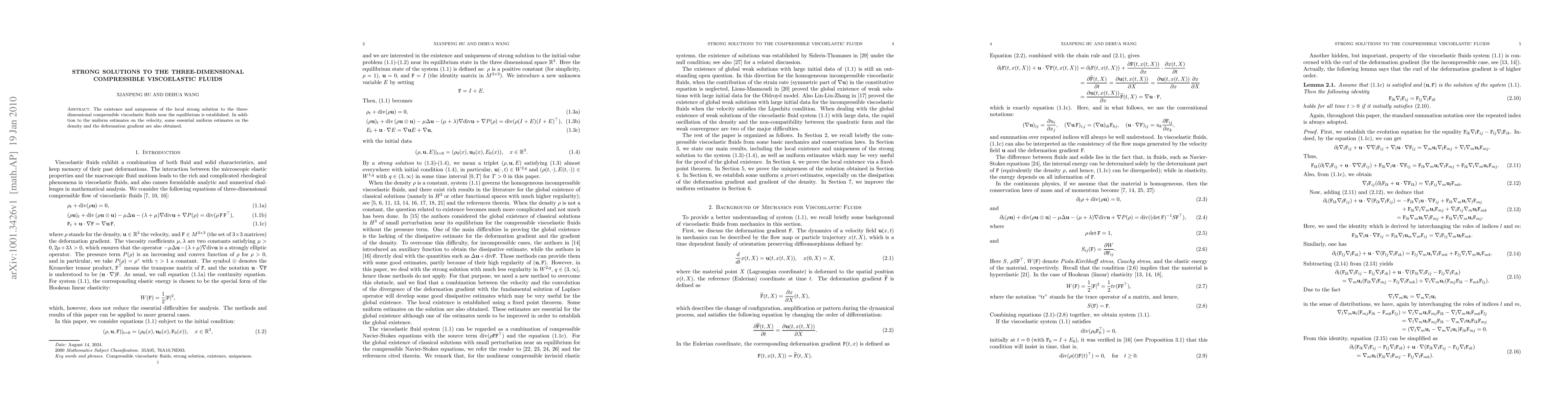 The existence and uniqueness of the local strong solution to the three-dimensional compressible viscoelastic fluids near the equilibrium is established. In addition to the uniform estimates on the velocity, some essential uniform estimates on the density and the deformation gradient are also obtained.