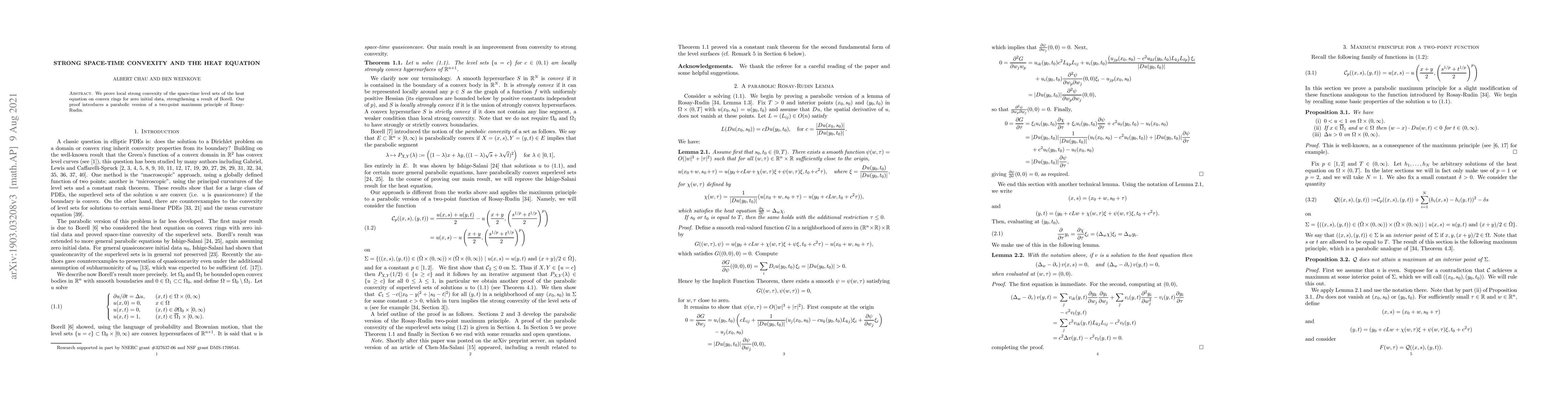 This paper proves local strong convexity of the space-time level sets of the heat equation on convex rings for zero initial data, enhancing a prior result by Borell. The proof utilizes a novel parabolic version of the Rosay-Rudin two-point maximum principle.