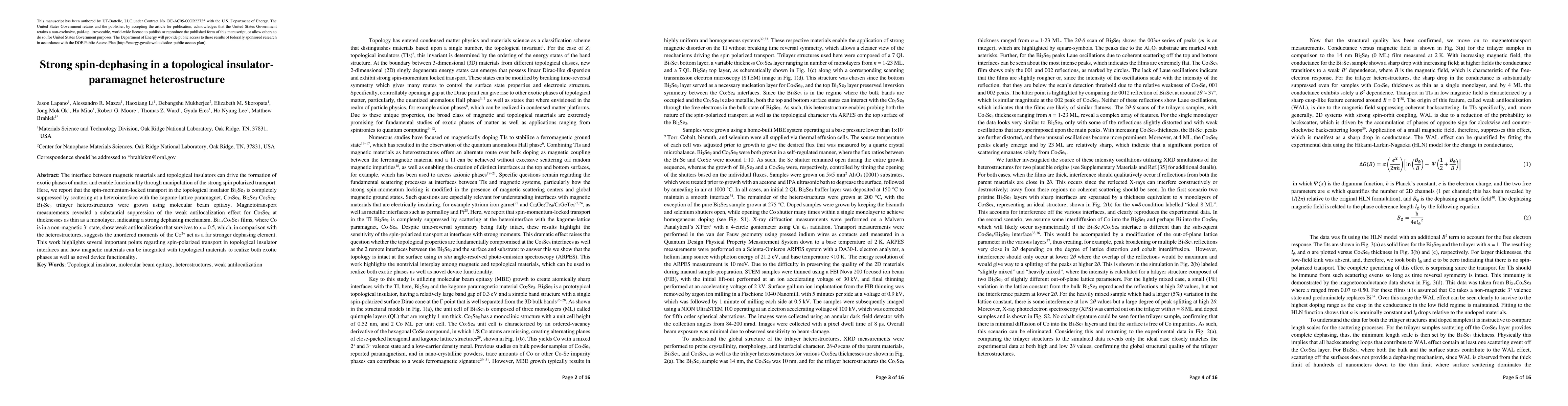 The interface between magnetic materials and topological insulators can drive the formation of exotic phases of matter and enable functionality through manipulation of the strong spin polarized transport. Here, we report that the spin-momentum-locked transport in the topological insulator Bi$_2$Se$_3$ is completely suppressed by scattering at a heterointerface with the kagome-lattice paramagnet, Co$_7$Se$_8$. Bi$_2$Se$_{3-}$Co$_7$Se$_{8-}$Bi$_2$Se$_3$ trilayer heterostructures were grown using molecular beam epitaxy. Magnetotransport measurements revealed a substantial suppression of the weak antilocalization effect for Co$_7$Se$_8$ at thicknesses as thin as a monolayer, indicating a strong dephasing mechanism. Bi$_{2-x}$Co$_x$Se$_3$ films, where Co is in a non-magnetic $3^+$ state, show weak antilocalization that survives to $x = 0.5$, which, in comparison with the heterostructures, suggests the unordered moments of the Co$^{2+}$ act as a far stronger dephasing element. This work highlights several important points regarding spin-polarized transport in topological insulator interfaces and how magnetic materials can be integrated with topological materials to realize both exotic phases as well as novel device functionality.