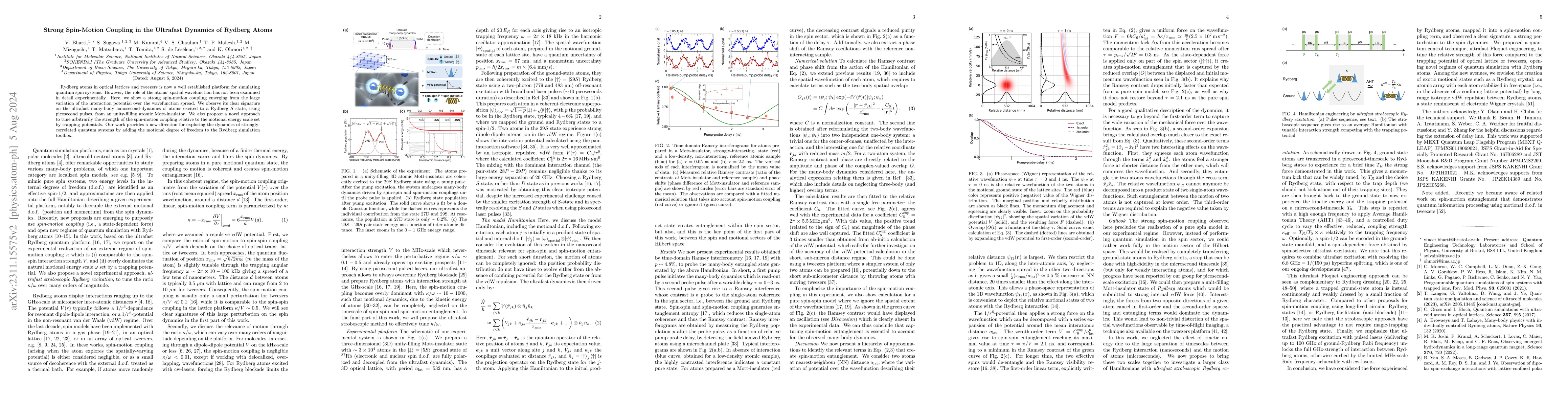 This paper demonstrates strong spin-motion coupling in ultrafast quantum dynamics of Rydberg atoms in a Mott-insulator lattice, revealing its impact on many-body dynamics. The authors propose a method to adjust the coupling strength, offering a new approach to explore the dynamics of strongly-correlated quantum systems.