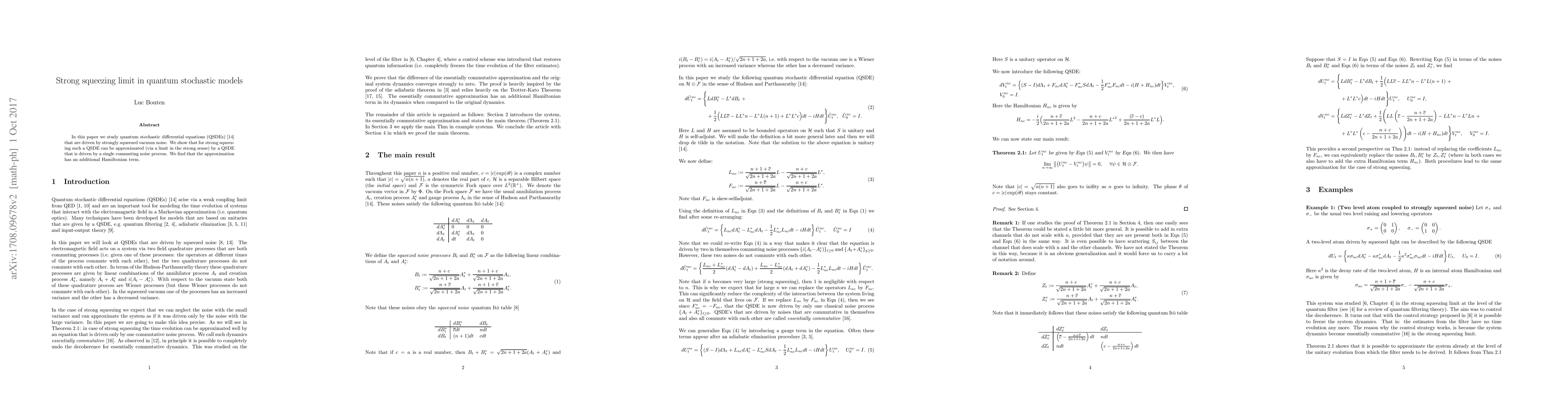 Researchers show that strongly squeezed quantum stochastic differential equations can be approximated by a simpler model with an additional Hamiltonian term, allowing for easier analysis and computation.