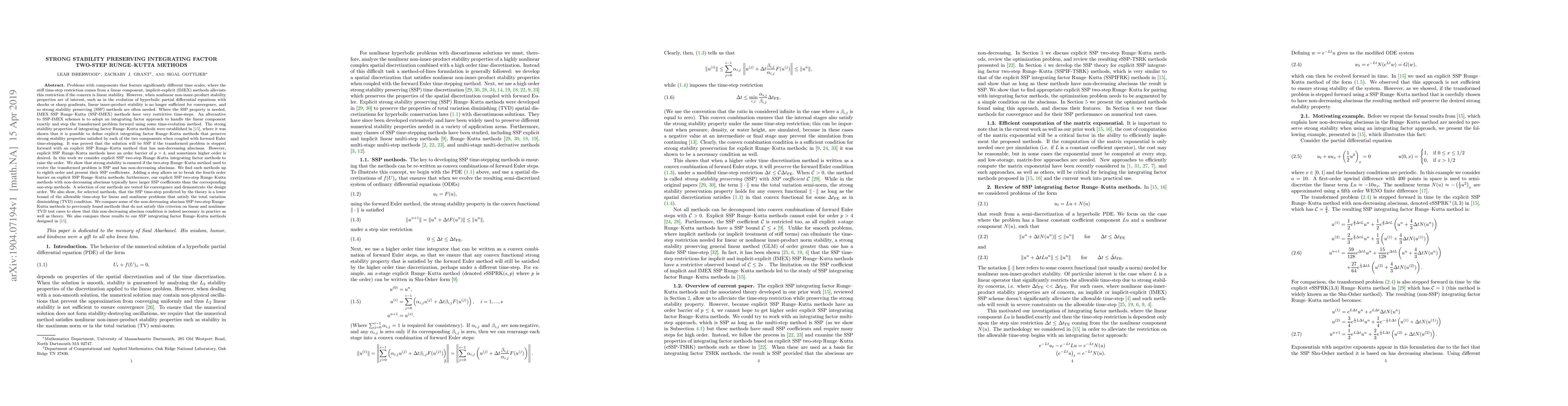 The development and validation of strong-stability-preserving integrating factor Runge-Kutta methods, which provide a new approach to achieving strong stability preservation in numerical methods.