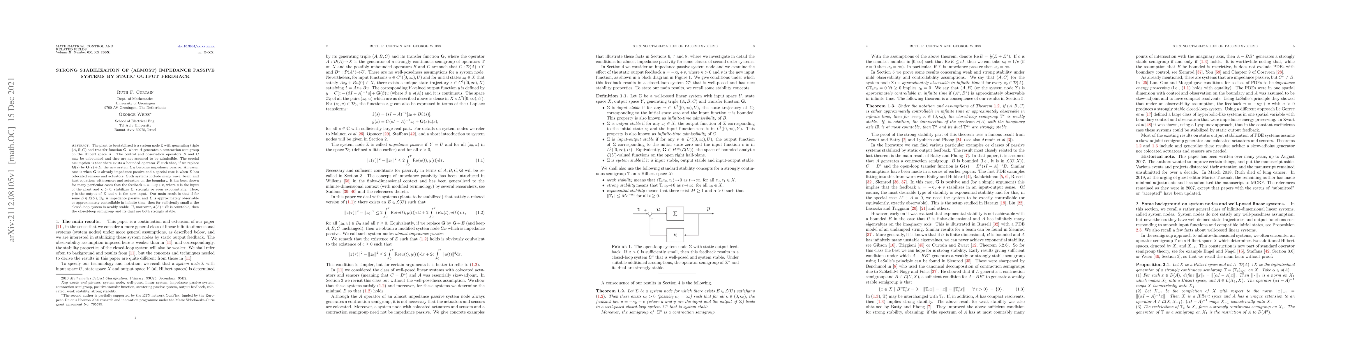 The plant to be stabilized is a system node $\Sigma$ with generating triple $(A,B,C)$ and transfer function $\bf G$, where $A$ generates a contraction semigroup on the Hilbert space $X$. The control and observation operators $B$ and $C$ may be unbounded and they are not assumed to be admissible. The crucial assumption is that there exists a bounded operator $E$ such that, if we replace ${\bf G}(s)$ by ${\bf G}(s)+E$, the new system $\Sigma_E$ becomes impedance passive. An easier case is when $\bf G$ is already impedance passive and a special case is when \mm $\Sigma$ has colocated sensors and actuators. Such systems include many wave, beam and heat equations with sensors and actuators on the boundary. It has been shown for many particular cases that the feedback $u=-\kappa y+v$, where $u$ is the input of the plant and $\kappa>0$, stabilizes $\Sigma$, strongly or even exponentially. Here, $y$ is the output of \m $\Sigma$ and $v$ is the new input. Our main result is that if for some $E\in{\mathcal L}(U)$, $\Sigma_E$ is impedance passive, and \m $\Sigma$ is approximately observable or approximately controllable in infinite time, then for sufficiently small $\kappa$ the closed-loop system is weakly stable. If, moreover, $\sigma(A)\cap i{\mathbb R}$ is countable, then the closed-loop semigroup and its dual are both strongly stable.