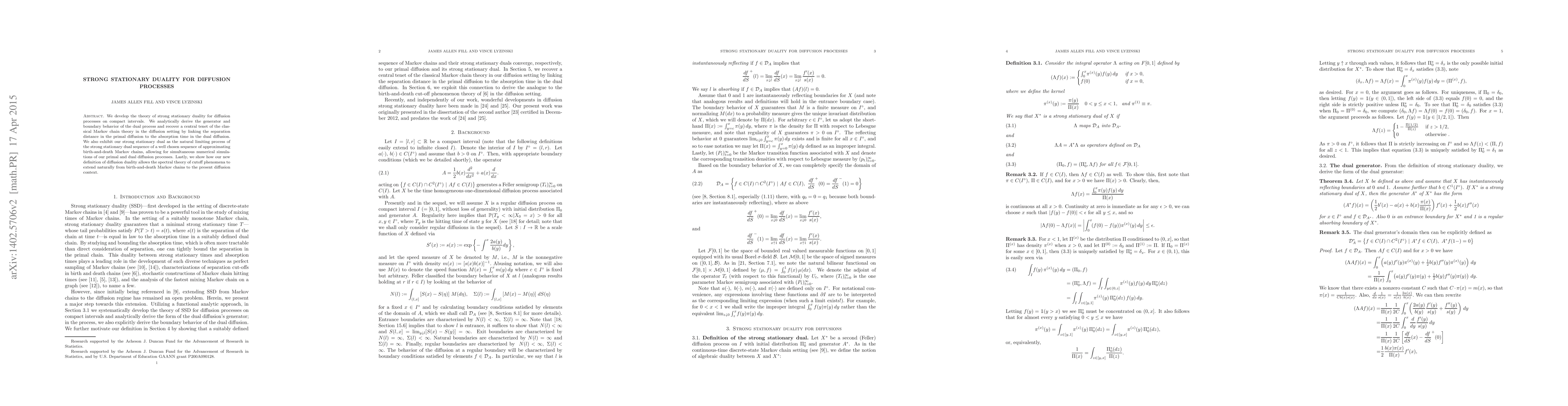 The research introduces a new method for analyzing diffusion processes by connecting their separation from stationarity to the absorption times of their dual processes, extending classical Markov chain theory to the continuous-time diffusion setting.