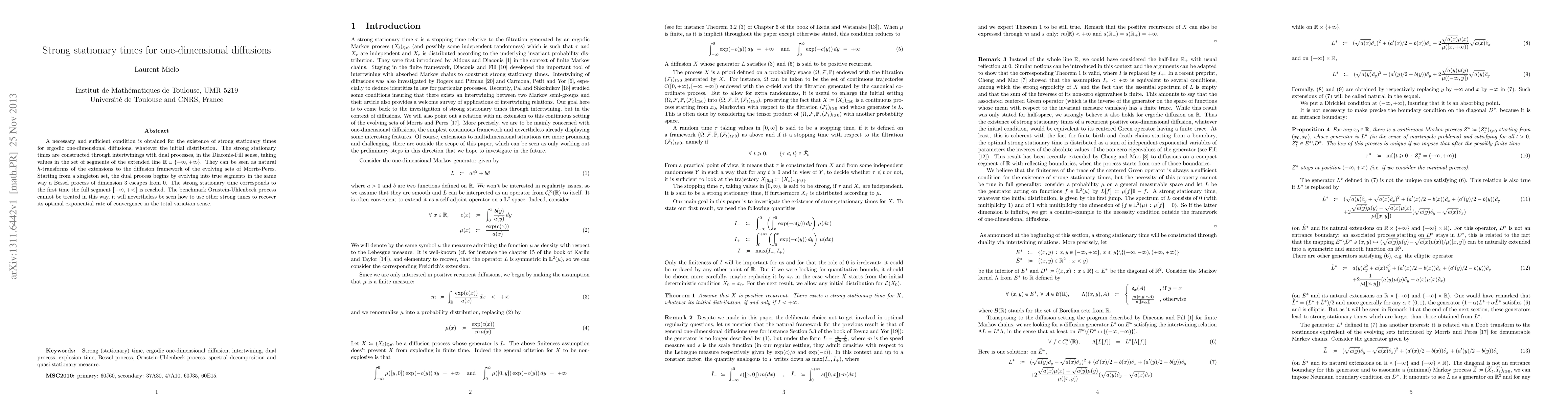 This paper establishes a necessary and sufficient condition for the existence of strong stationary times for ergodic one-dimensional diffusions, constructing them via intertwinings with dual processes. The study extends Morris-Peres evolving sets to diffusions and highlights the unique approach for the Ornstein-Uhlenbeck process.