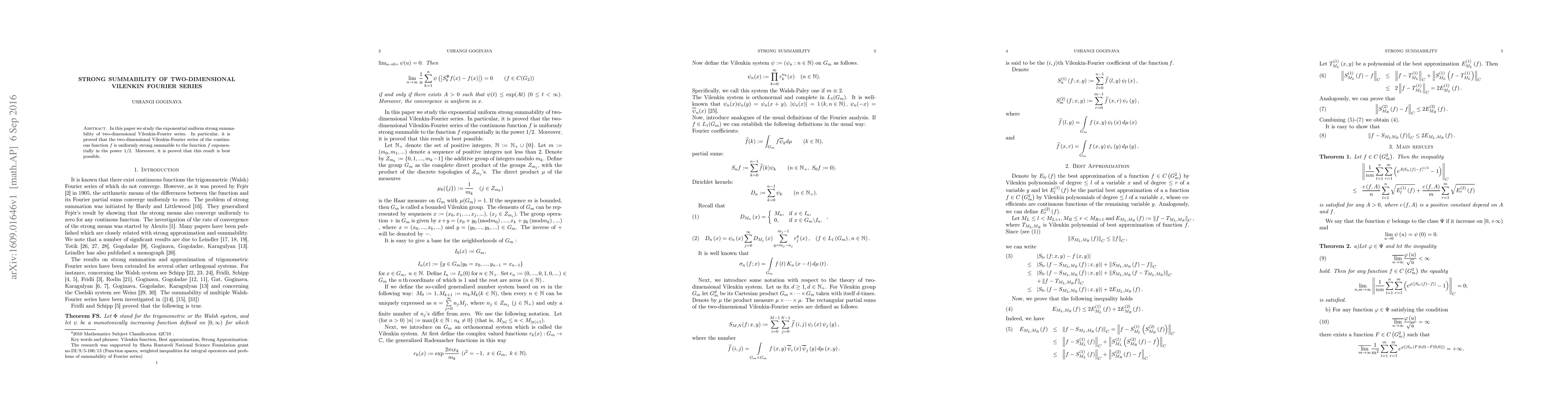 This paper investigates the exponential uniform strong summability of two-dimensional Vilenkin-Fourier series, proving that the series converges to the function $f$ uniformly and exponentially in $1/2$, with the result shown to be optimal.
