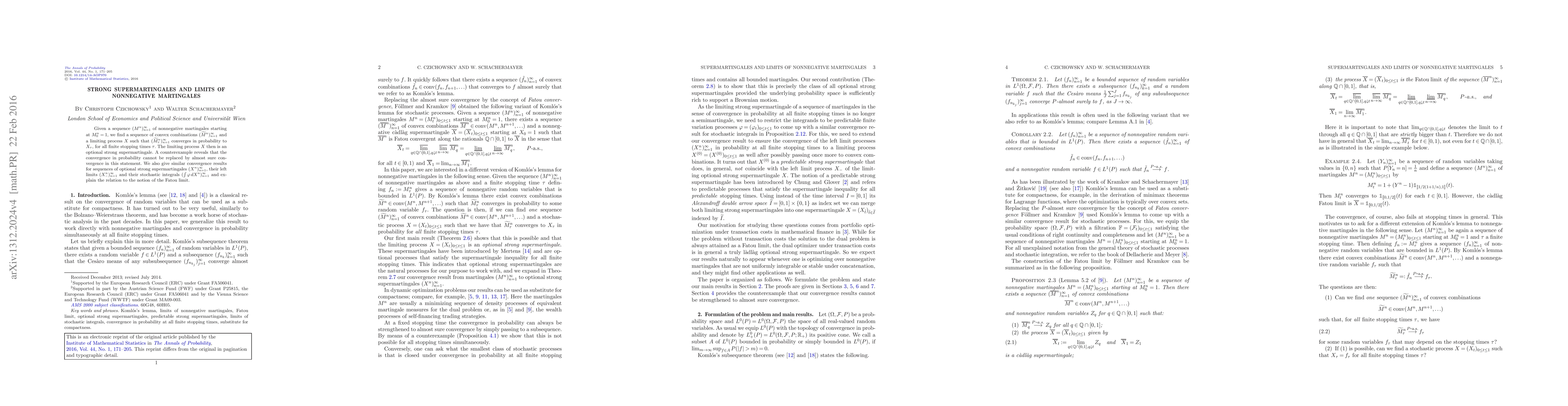This paper investigates the convergence of sequences of nonnegative martingales to an optional strong supermartingale, showing that convex combinations of these martingales converge in probability to a limiting process. It also demonstrates that almost sure convergence is not generally achievable and provides analogous convergence results for strong supermartingales and their related processes.