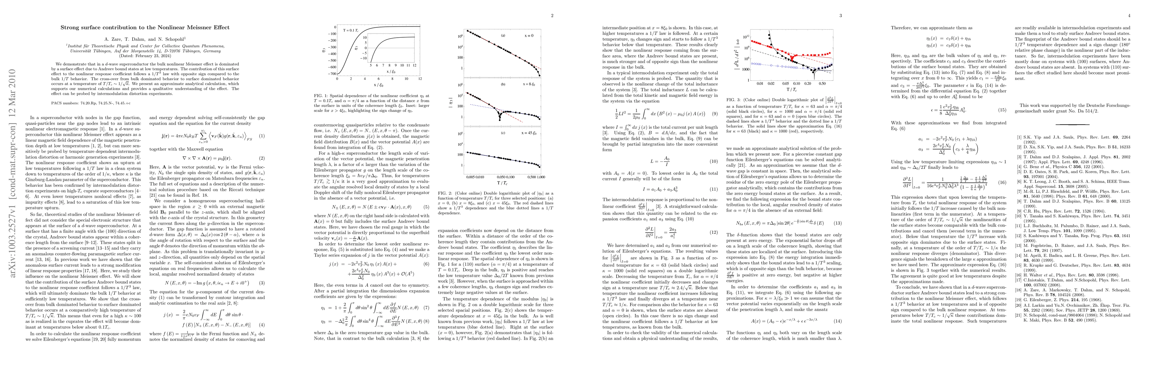 Researchers found that a surface effect in superconductors, driven by Andreev bound states, dominates the nonlinear Meissner effect at low temperatures, with a crossover temperature related to the material's kappa value.