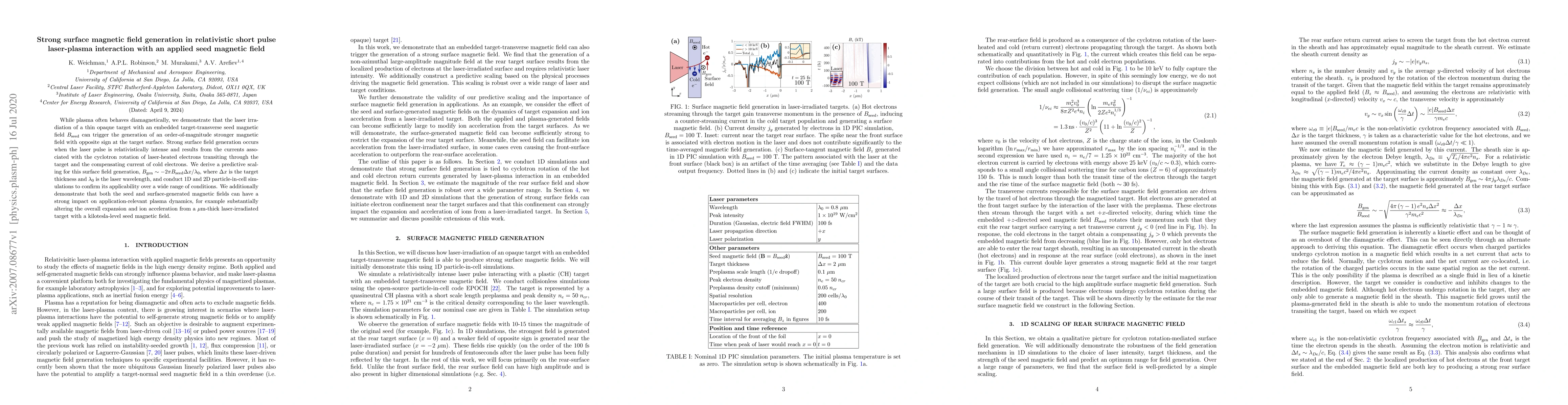 This paper demonstrates that relativistic laser pulses can generate a strong surface magnetic field in plasma interactions, significantly stronger than an embedded seed magnetic field, due to the cyclotron rotation of laser-heated electrons and compensating currents. The derived scaling law $B_\mathrm{gen} \sim - 2 \pi B_\mathrm{seed} \Delta x/\lambda_0$ is validated through simulations and shown to influence plasma dynamics, including ion acceleration.