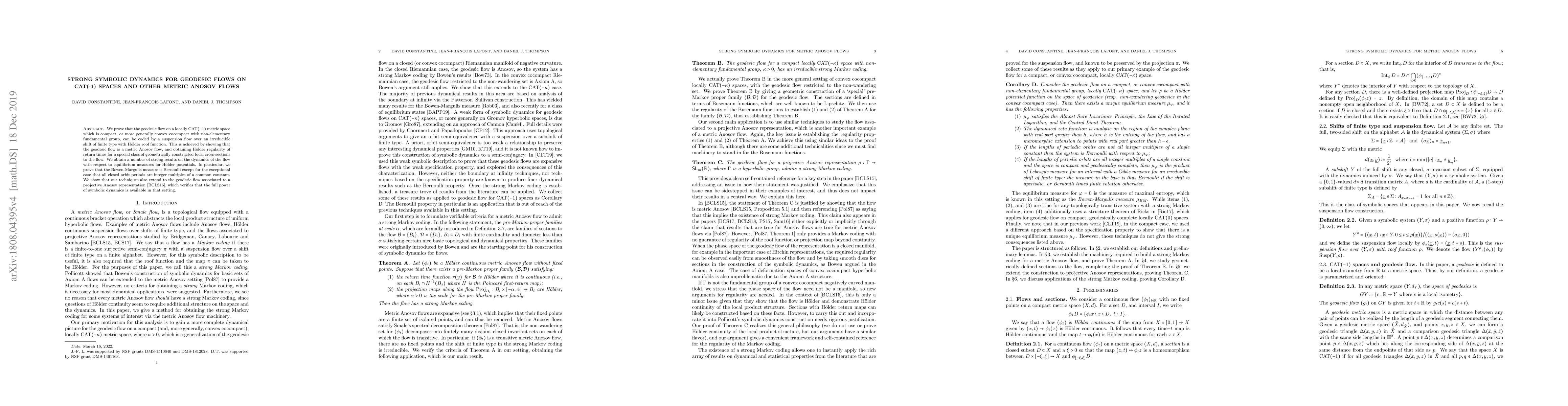 The paper presents a novel approach to coding geodesic flows on CAT(-1) spaces using suspension flows over irreducible shifts of finite type with Hölder roof functions, establishing strong symbolic dynamics and Hölder continuity of return times.