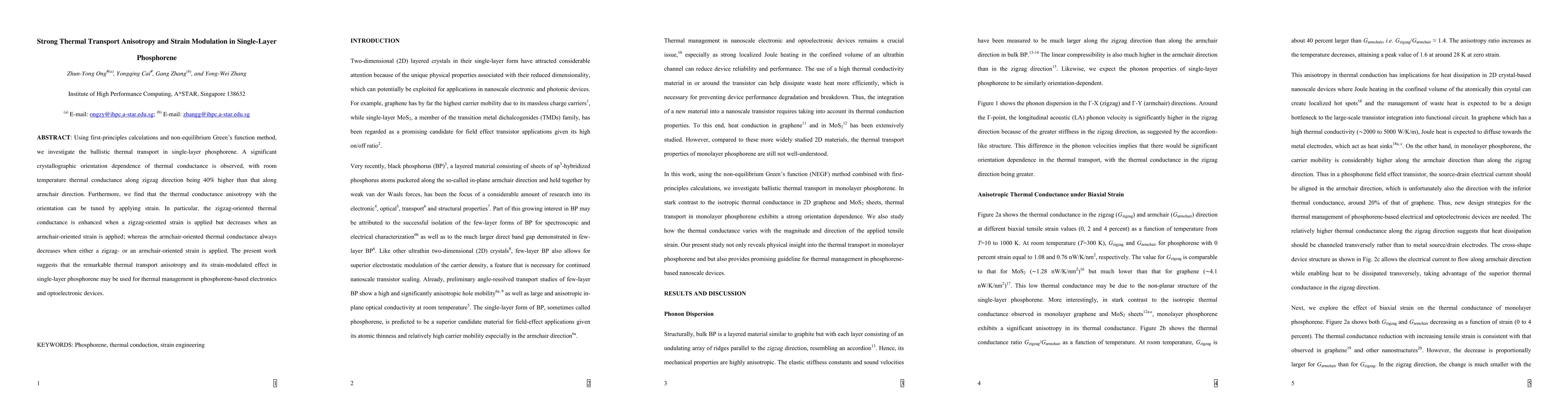 This paper investigates the thermal transport properties of single-layer phosphorene, revealing strong anisotropy with higher thermal conductance along the zigzag direction. The study shows that thermal conductance anisotropy can be tuned by applying strain, suggesting potential applications in thermal management for phosphorene-based electronics.