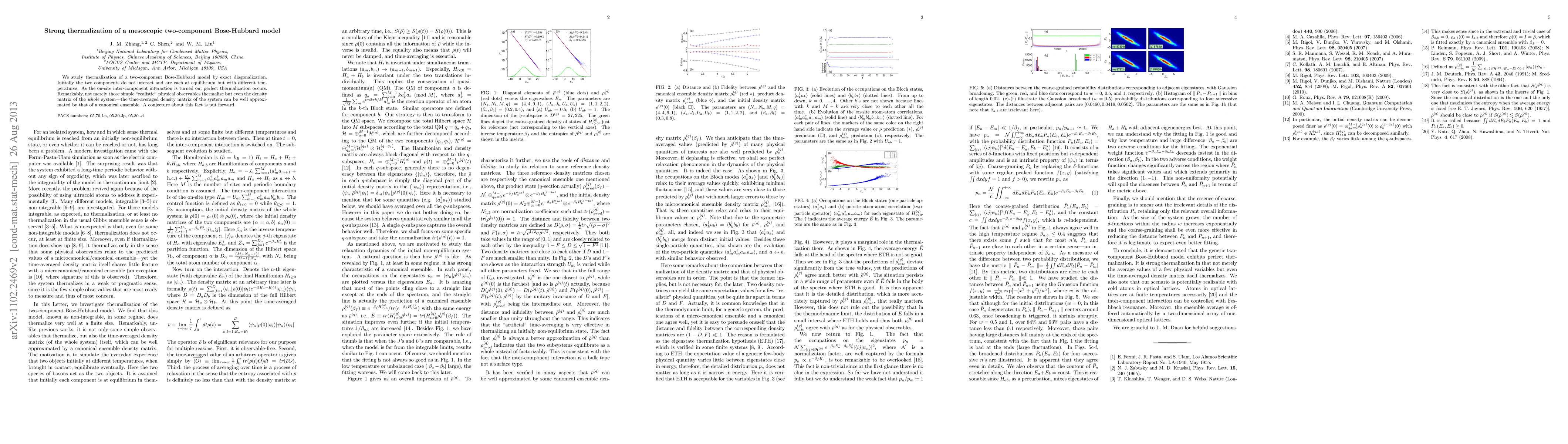 This paper investigates the thermalization process in a two-component Bose-Hubbard model via exact diagonalization. The study reveals that turning on inter-component interactions leads to perfect thermalization, with the system's time-averaged density matrix closely resembling that of a canonical ensemble.