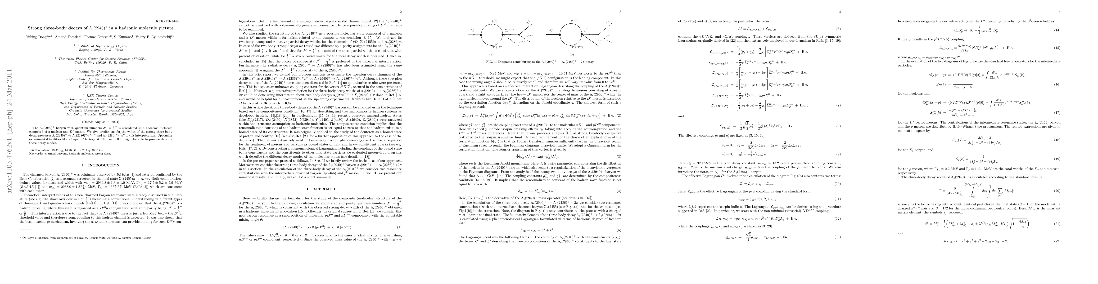 The Lambdac(2940)+ baryon with quantum numbers J(P) = 1/2(+) is considered as a hadronic molecule composed of a nucleon and D* meson. We give predictions for the width of the strong three-body decay processes Lambdac(2940)+ to Lambdac(2286)+ pi(+) pi(-) and Lambdac(2940)+ to Lambdac(2286)+ pi(0) pi(0) in this interpretation. Upcoming experimental facilities like a Super B factory at KEK or LHCb might be able to provide data on these decay modes.