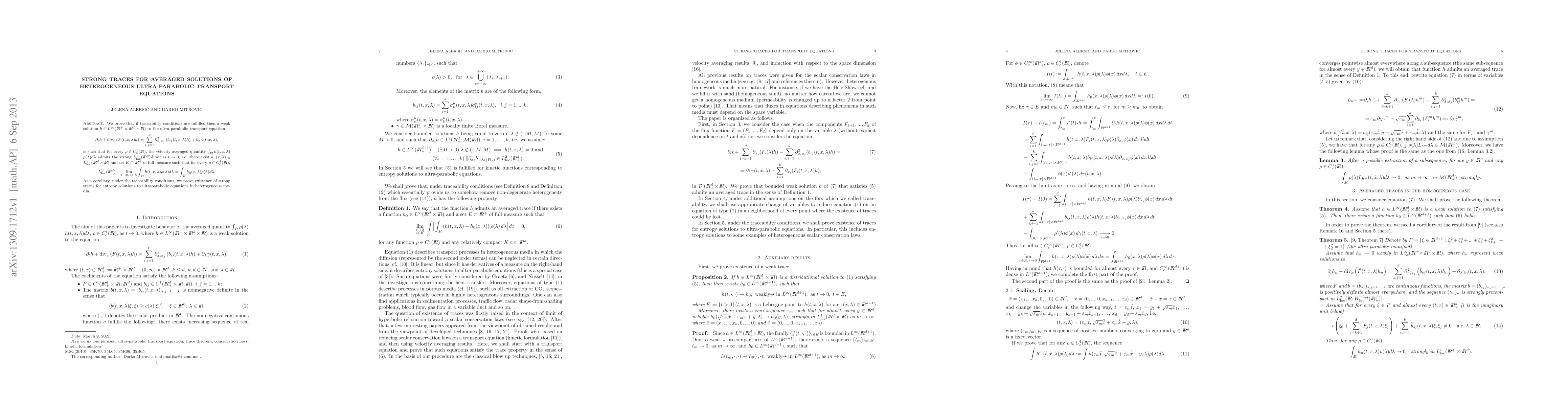 This research proves that under specific conditions, a weak solution to a complex transport equation in ultra-parabolic form admits a strong velocity-averaged limit as time approaches zero. It also confirms the existence of strong traces for entropy solutions in heterogeneous media, which is significant for understanding behavior in complex, varied environments.