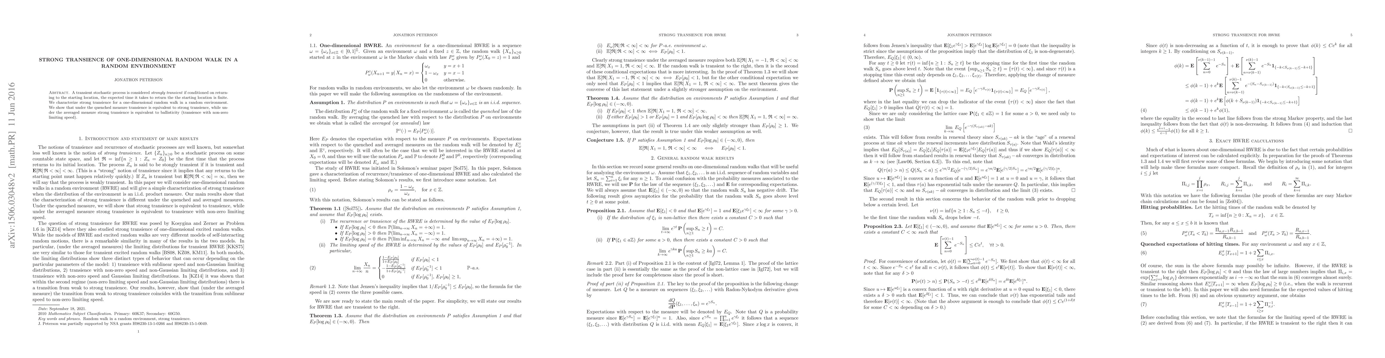 The paper analyzes a one-dimensional random walk in a random environment, characterizing strong transience under both quenched and averaged measures.