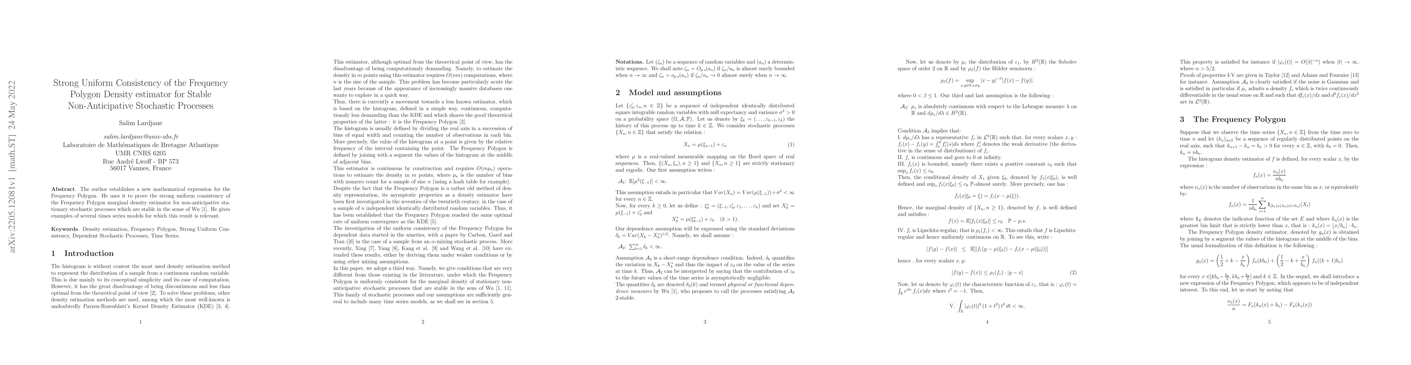 This paper establishes strong uniform consistency of a frequency polygon density estimator for stable non-anticipative stochastic processes, providing a mathematical expression for the Frequency Polygon and its relevance to several time series models.