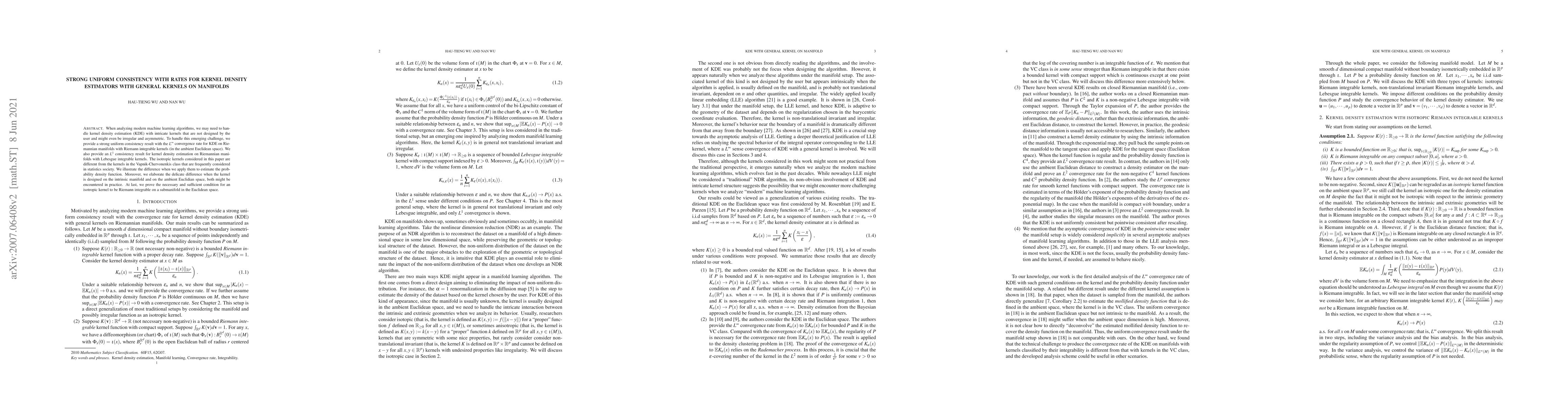 This paper establishes strong uniform consistency and convergence rates for kernel density estimators on Riemannian manifolds with general kernels, improving handling of irregular and asymmetric kernels in machine learning.