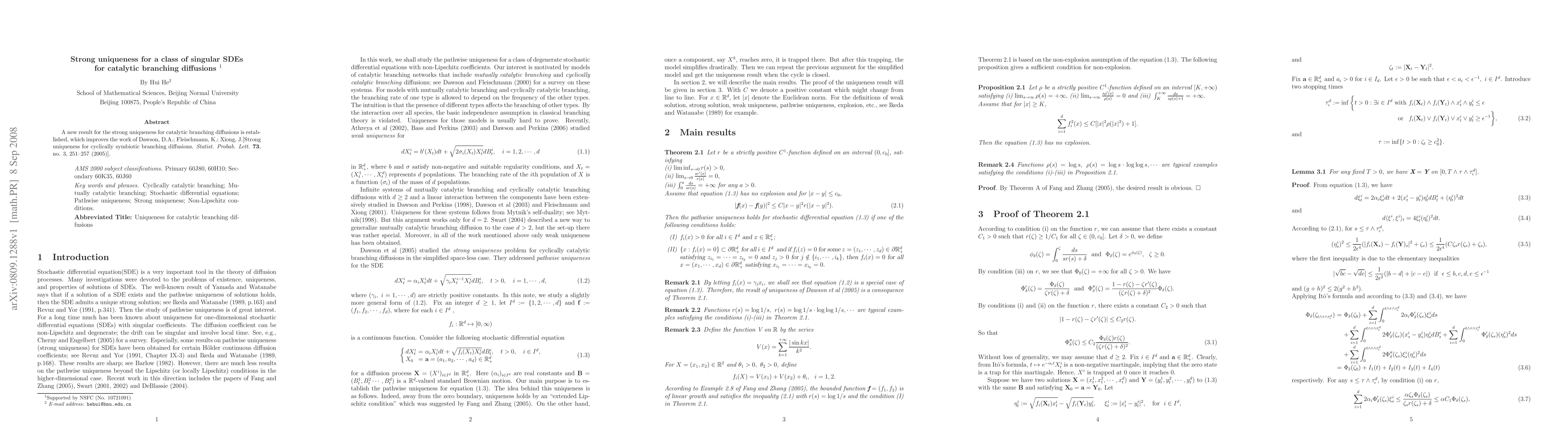 This paper establishes strong uniqueness for a class of singular stochastic differential equations (SDEs) governing catalytic branching diffusions, enhancing previous results by Dawson, Fleischmann, and Xiong. The findings provide a more robust framework for understanding these complex stochastic processes.