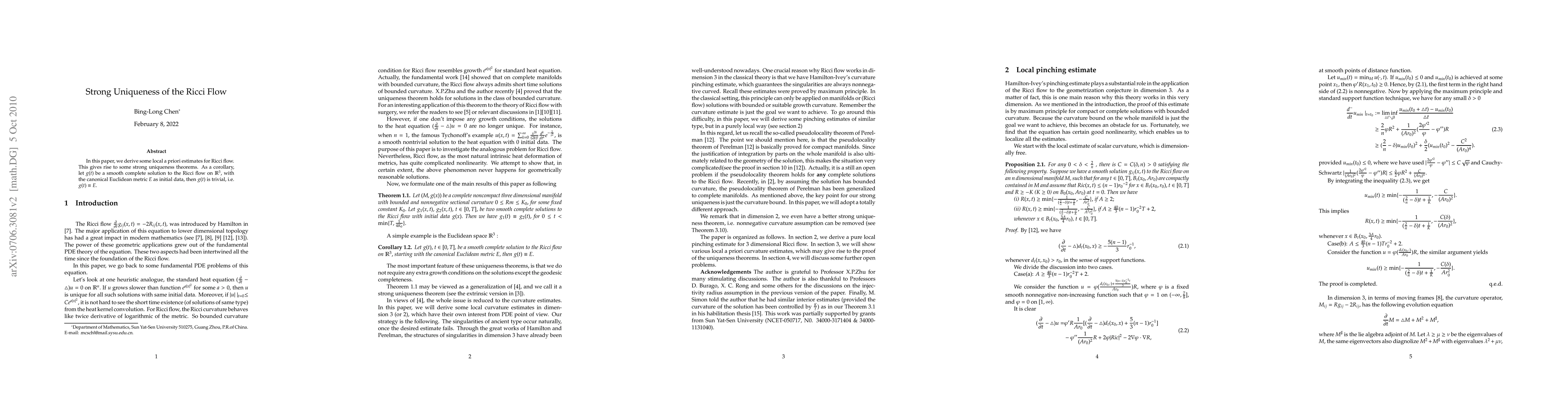 The paper derives local a priori estimates for Ricci flow, leading to strong uniqueness theorems.