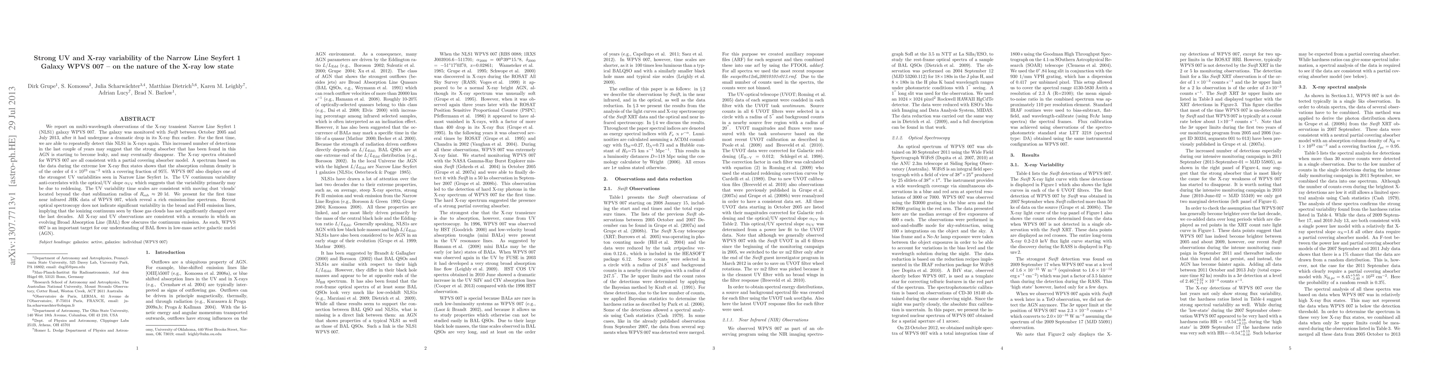 We report on multi-wavelength observations of the X-ray transient Narrow Line Seyfert 1 (NLS1) galaxy WPVS 007. The galaxy was monitored with Swift between October 2005 and July 2013, after it had undergone a dramatic drop in its X-ray flux earlier. For the first time, we are able to repeatedly detect this NLS1 in X-rays again. This increased number of detections in the last couple of years may suggest that the strong absorber that has been found in this AGN is starting to become leaky, and may eventually disappear. The X-ray spectra obtained for WPVS 007 are all consistent with a partial covering absorber model. A spectrum based on the data during the extreme low X-ray flux states shows that the absorption column density is of the order of 4 x 10^23 cm^-2 with a covering fraction of 95%. WPVS 007 also displays one of the strongest UV variabilities seen in Narrow Line Seyfert 1s. The UV continuum variability anti-correlates with the optical/UV slope alpha-UV which suggests that the variability primarily may be due to reddening. The UV variability time scales are consistent with moving dust `clouds' located beyond the dust sublimation radius of approximately 20 ld. We present for the first time near infrared JHK data of WPVS 007, which reveal a rich emission-line spectrum. Recent optical spectroscopy does not indicate significant variability in the broad and FeII emission lines, implying that the ionizing continuum seen by those gas clouds has not significantly changed over the last decades. All X-ray and UV observations are consistent with a scenario in which an evolving Broad Absorption Line (BAL) flow obscures the continuum emission. As such, WPVS 007 is an important target for our understanding of BAL flows in low-mass active galactic nuclei (AGN).