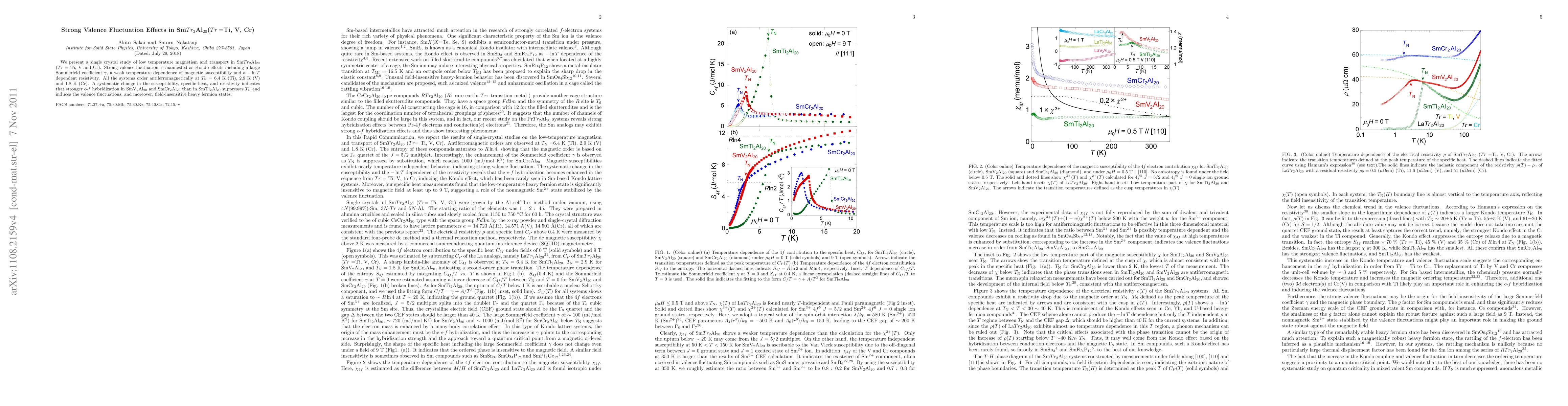 Researchers studied the magnetic properties of SmTi2Al20, SmV2Al20, and SmCr2Al20, finding strong valence fluctuations that lead to antiferromagnetic ordering at very low temperatures.