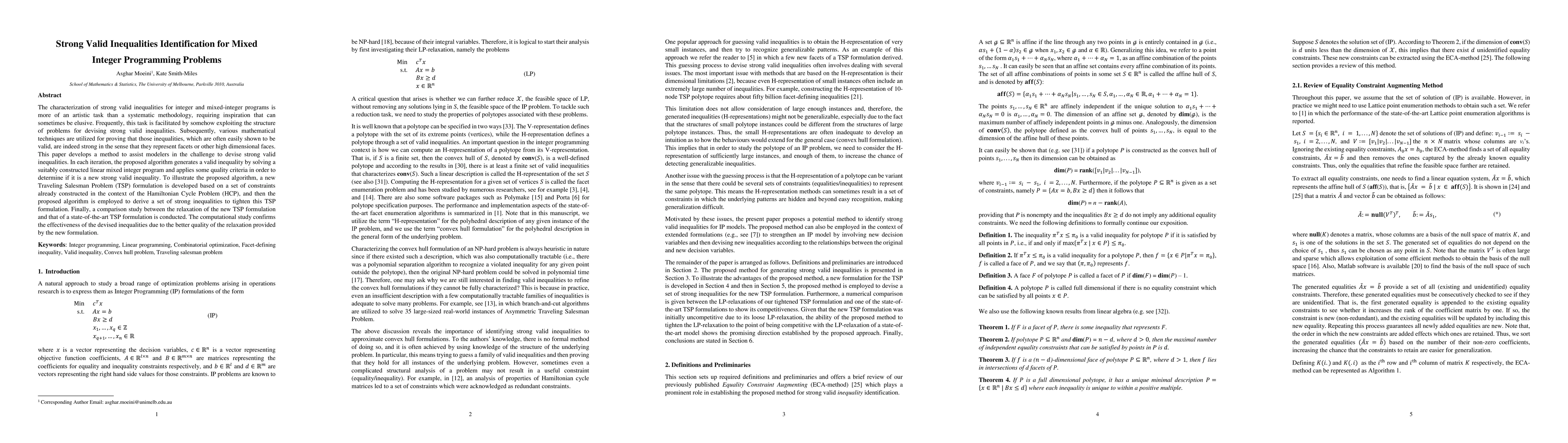 This paper proposes an algorithmic method to systematically identify strong valid inequalities for mixed-integer programming problems, demonstrating its effectiveness through a new TSP formulation and comparing it with existing models to show improved relaxation quality.